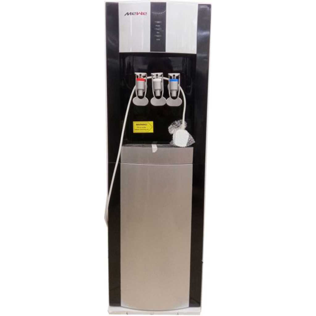 MeWe MWD-16E 3 Tap Hot & Normal & Cold Water Dispenser (340*330*980mm) – Black, Silver. Hot/Normal/Cold Water Cooler is made with innovation and style. The easy-to-use paddle spouts make it so much more convenient to use. Simply press your cup against the paddle to let the flow of water to come out. The machines highly efficient compressor makes the cold water crisp and ice cold at approximately 47° F without the need of adding ice cubes to your drink. The hot faucet is hot enough to cook one’s tea or coffee or any other steaming hot beverage at approximately 185° F. Due to the extremely hot water, we’ve added a child safety lock on the hot water faucet.