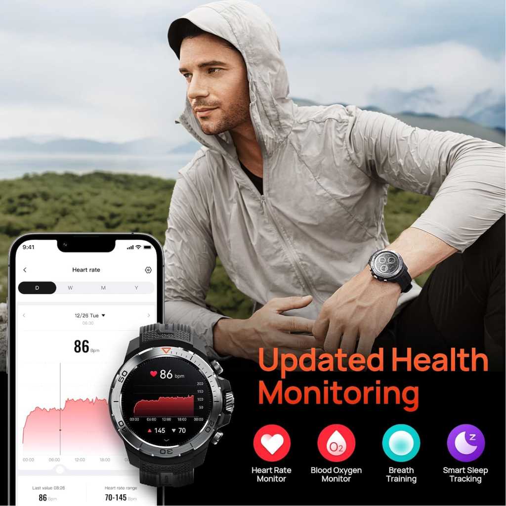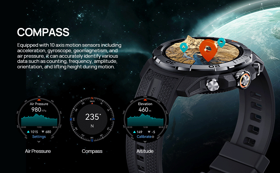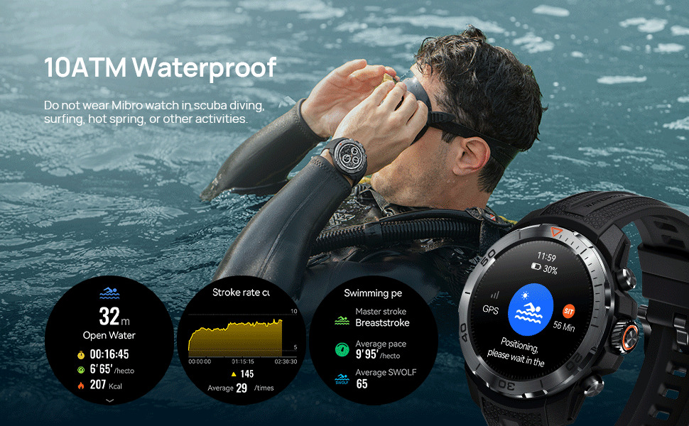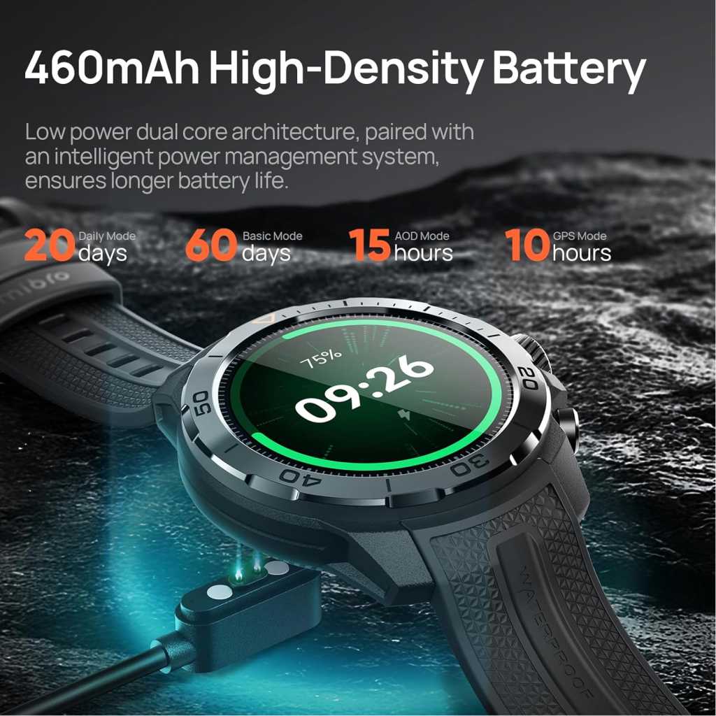 Key Features: Mibro GS Explorer GPS Smart watch for men and women 1500nit AMOLED Fitness SmartWatch Bluetooth Sleeping Monitor Trajectory Tracker 10ATM Waterproof for ios and Android,60 Days Extra-Long Battery. ⌚Military Standard Quality:Our Mibro GS Explorer outdoor sport smartwatch built to military standards,Having successfully passed 15 military-grade tests, including temperature,high altitude and low pressure,dust, salt spray and liquid contamination.The rugged smart watch for men is not only tough but also embodies fortitude and resilience. Suitable for any outdoor sports and harsh working environments. ⌚10ATM Waterproof & Professional Swimming Mode: This waterproof smart watch equipped with a depth gauge, Whether wildly racing jet skis, surfing or snorkeling, it embraces all. it supports recreational diving and freediving activities up to 30 meters deep and Built-in unique professional SWOLF swimming mode, informative data recording and professional data analysis ability,It is prohibited to wear a watch for activities such as surfing, diving, and soaking in hot springs. ⌚Built-in GPS & Altitude Pressure Compass: Mibro GS Explorer gps smartwatch built-in dual-frequency GNSS positioning chip, it supports L1+L5 GPS bands to maintain signal strength and consistency, allowing you to accurately track your location whether you’re riding in the city or hiking in the wild forest. It also includes an internal compass, altitude pressurization and altimeter sensor that displays your current location altitude and barometric pressure. ⌚24/7 Heart Rate,SpO₂ & Stress Monitoring:The mibro fitness smart watch adopt the new Circle Matrix Biological Detection System, with a multi-sensor layout and Fresnel pattern optical design, makes heart rate and blood oxygen monitoring more efficient, and data more accurate.The smartwatch can be set to send a reminder if it detects abnormally: high or low heart rates, low SpO₂ levels, or high stress levels. ⌚460mah Long Battery Life & Great Compatibility: Due to the built-in ultra large capacity battery of 460mAh, the fitness tracker has a normal usage time of 20 days and 60 days of standby time,The fitness watches is compatible with smart phones that use iOS 10.0/Android 5.0 or above and bluetooth 5.3 or above. The activity tracker is connected to your smartphone with the app “mibro” and record your health data,which for you to achieve your health goals. ⌚7 Smart Recognition Sports: Exclusive smart recognition mode, a collection of walking, running, cycling, elliptical and other 7 sports, no need to manually, when you exercise automatically recognise your sport and turn on the exercise monitoring. There are more than 150+ sports modes on the smartwatch for men: walking, running,yoga,cycling,mountain,climbing,baseball,basketball,football,tennis, badminton, dance,etc.During your workouts,the “mibro”app will record your data in real time,such as steps, calories burned, distance,and activity time. ⌚Best Choice for Gifts:Our Mibro GS Explorer sport smartwatch are particularly suitable as a gift for men and women of all ages who love fashion,healthy,sports.Of course,there are birthdays, Mother’s Day, Father’s Day, Halloween, weddings, boys, girls and more.