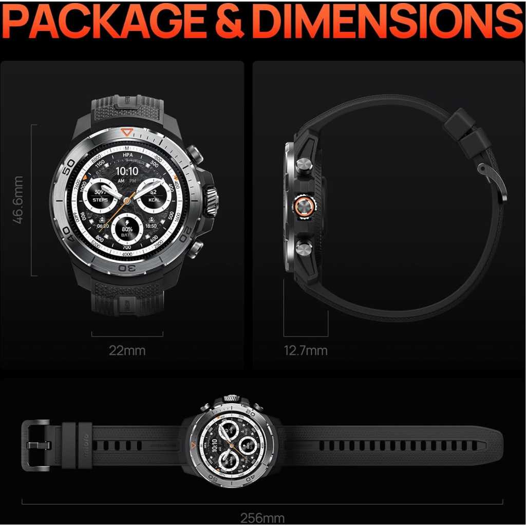 Mibro GS Explorer GPS Smart watch for men and women 1500nit AMOLED Fitness SmartWatch Bluetooth Sleeping Monitor Trajectory Tracker 10ATM Waterproof for ios and Android,60 Days Extra-Long Battery. ⌚Military Standard Quality:Our Mibro GS Explorer outdoor sport smartwatch built to military standards,Having successfully passed 15 military-grade tests, including temperature,high altitude and low pressure,dust, salt spray and liquid contamination.The rugged smart watch for men is not only tough but also embodies fortitude and resilience. Suitable for any outdoor sports and harsh working environments. ⌚10ATM Waterproof & Professional Swimming Mode: This waterproof smart watch equipped with a depth gauge, Whether wildly racing jet skis, surfing or snorkeling, it embraces all. it supports recreational diving and freediving activities up to 30 meters deep and Built-in unique professional SWOLF swimming mode, informative data recording and professional data analysis ability,It is prohibited to wear a watch for activities such as surfing, diving, and soaking in hot springs. ⌚Built-in GPS & Altitude Pressure Compass: Mibro GS Explorer gps smartwatch built-in dual-frequency GNSS positioning chip, it supports L1+L5 GPS bands to maintain signal strength and consistency, allowing you to accurately track your location whether you’re riding in the city or hiking in the wild forest. It also includes an internal compass, altitude pressurization and altimeter sensor that displays your current location altitude and barometric pressure. ⌚24/7 Heart Rate,SpO₂ & Stress Monitoring:The mibro fitness smart watch adopt the new Circle Matrix Biological Detection System, with a multi-sensor layout and Fresnel pattern optical design, makes heart rate and blood oxygen monitoring more efficient, and data more accurate.The smartwatch can be set to send a reminder if it detects abnormally: high or low heart rates, low SpO₂ levels, or high stress levels. ⌚460mah Long Battery Life & Great Compatibility: Due to the built-in ultra large capacity battery of 460mAh, the fitness tracker has a normal usage time of 20 days and 60 days of standby time,The fitness watches is compatible with smart phones that use iOS 10.0/Android 5.0 or above and bluetooth 5.3 or above. The activity tracker is connected to your smartphone with the app “mibro” and record your health data,which for you to achieve your health goals. ⌚7 Smart Recognition Sports: Exclusive smart recognition mode, a collection of walking, running, cycling, elliptical and other 7 sports, no need to manually, when you exercise automatically recognise your sport and turn on the exercise monitoring. There are more than 150+ sports modes on the smartwatch for men: walking, running,yoga,cycling,mountain,climbing,baseball,basketball,football,tennis, badminton, dance,etc.During your workouts,the “mibro”app will record your data in real time,such as steps, calories burned, distance,and activity time. ⌚Best Choice for Gifts:Our Mibro GS Explorer sport smartwatch are particularly suitable as a gift for men and women of all ages who love fashion,healthy,sports.Of course,there are birthdays, Mother’s Day, Father’s Day, Halloween, weddings, boys, girls and more. Product Description