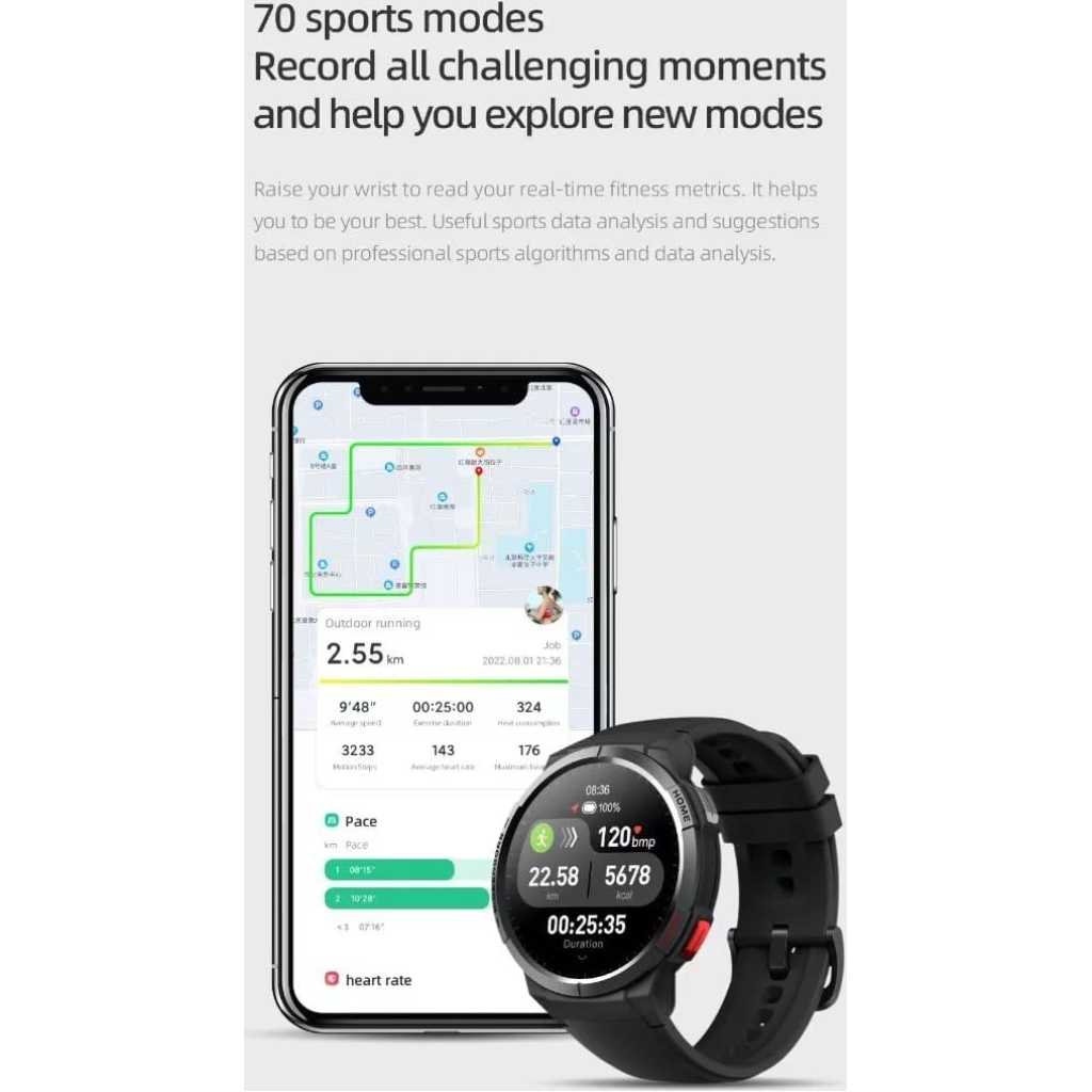 Key Features: Dual-core main chip Amoled HD Display AOD screen off display GPS satellite positioning 70 sport modes Intelligent health monitoring 24-day ultra-long battery life 5ATM waterproof