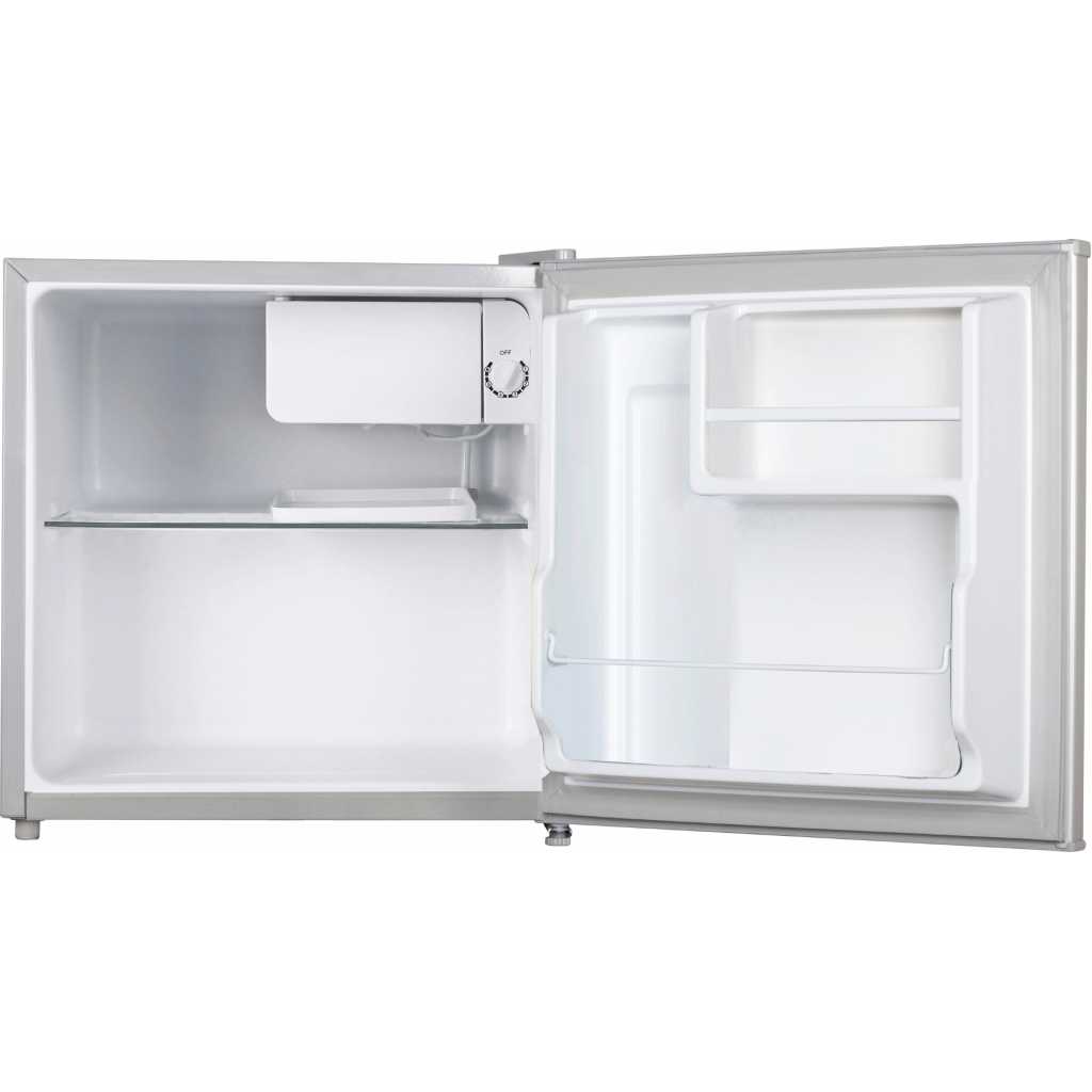 Midea 50L Mini Bar Refrigerator MDRD86FGG – Silver Midea’s 50L. Compact Refrigerator keeps your produce fresh for longer and offers plenty of freezer space for your frozen favorites. Easily set chilling preferences with mechanical temperature control and enjoy hassle-free cleaning with the manual defrost setting. Thanks to its adjustable legs and reversible door, you can perfectly fit this compact refrigerator anywhere in your kitchen, office, dorm room, or basement.