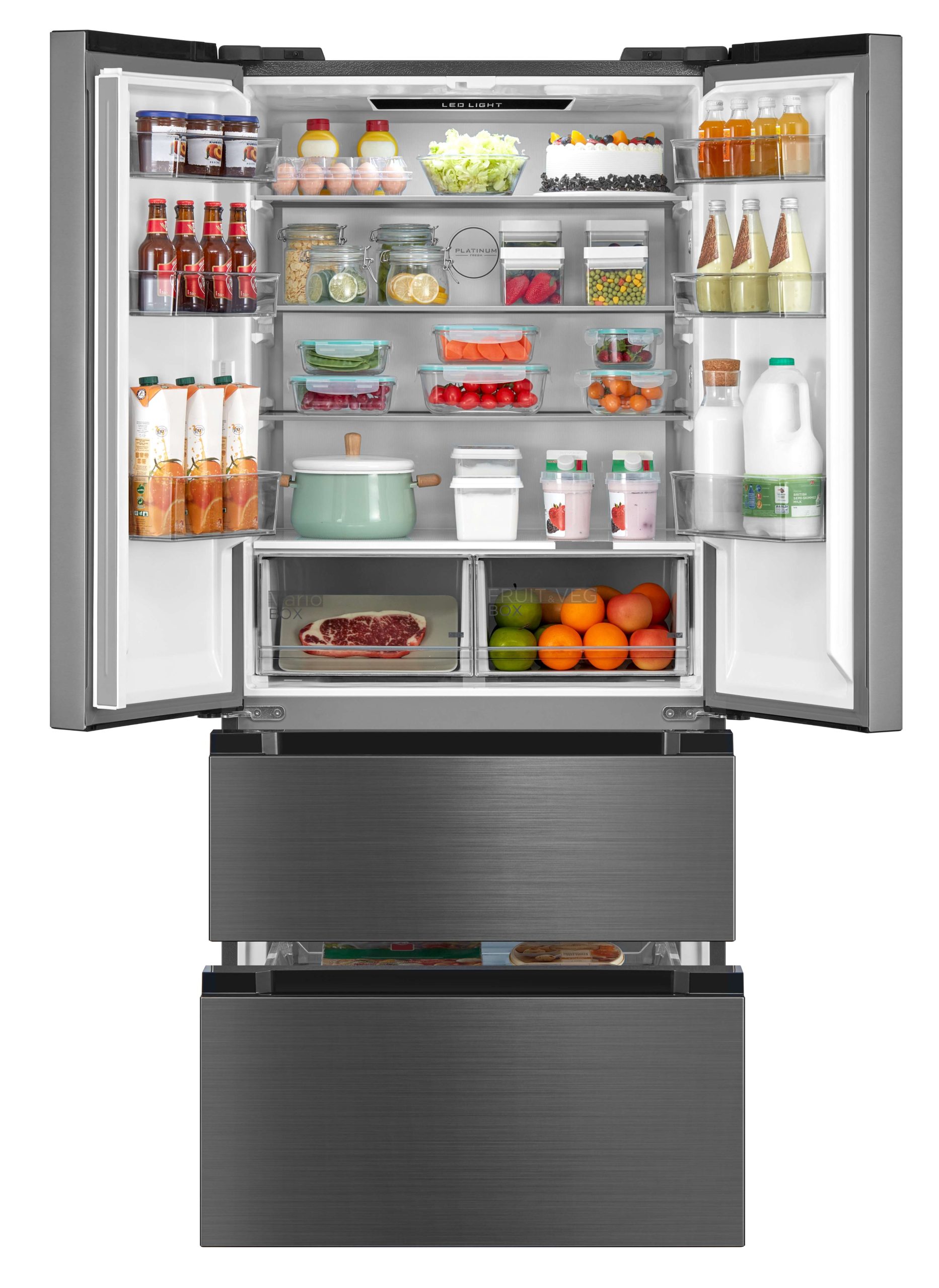 French Door and Freezer DrawerExperience the ultimate convenience with our innovative French Door and Freezer Drawer design that allows for easy access and visibility to all your favourite foods. With this feature, you can easily organize and find everything you need without having to dig through a cluttered fridge. C Class Energy RatingReduce your energy bills with the C-Class Energy Saving rating. This Fridge Freezer is designed to be environmentally friendly and cost-effective, offering powerful cooling whilst being energy efficient. Vario Box and Humidity BoxOur fridge freezer comes equipped with a Vario Box and Humidity Box, providing you with the perfect environment to store your fruits and vegetables. Say goodbye to wilted lettuce and hello to fresh, crisp produce. Wi-Fi ControlStay connected and in control with Wi-Fi Control. This allows you to adjust the temperature and even receive alerts when the door is left open. So, whether you're at home or on the go, you can manage your fridge freezer with ease. Total No FrostSay goodbye to manual defrosting with Total No Frost technology. This prevents ice build-up, ensuring your fridge freezer operates efficiently and maintains optimal cooling performance without the hassle. Low NoiseOur fridge freezer is designed to operate quietly, so you can enjoy a peaceful home environment without any disturbance. With our low noise feature, you can rest easy knowing that your fridge freezer won't disrupt your daily routine.