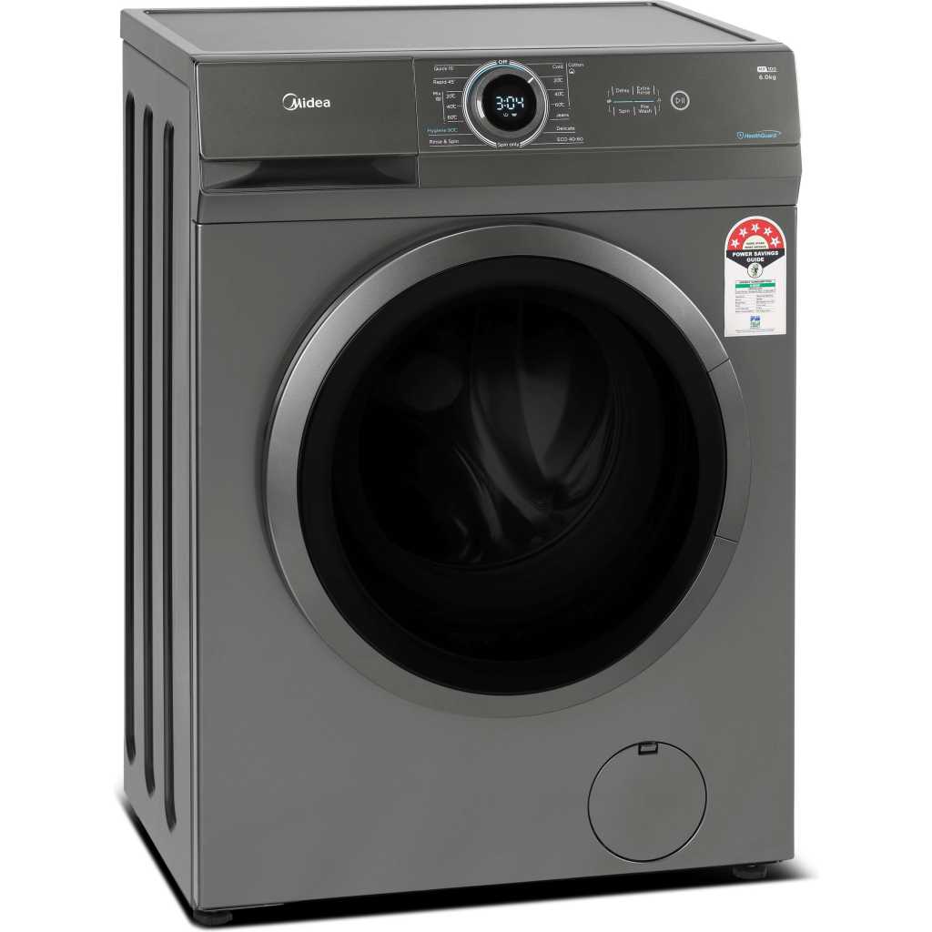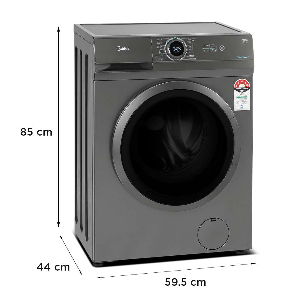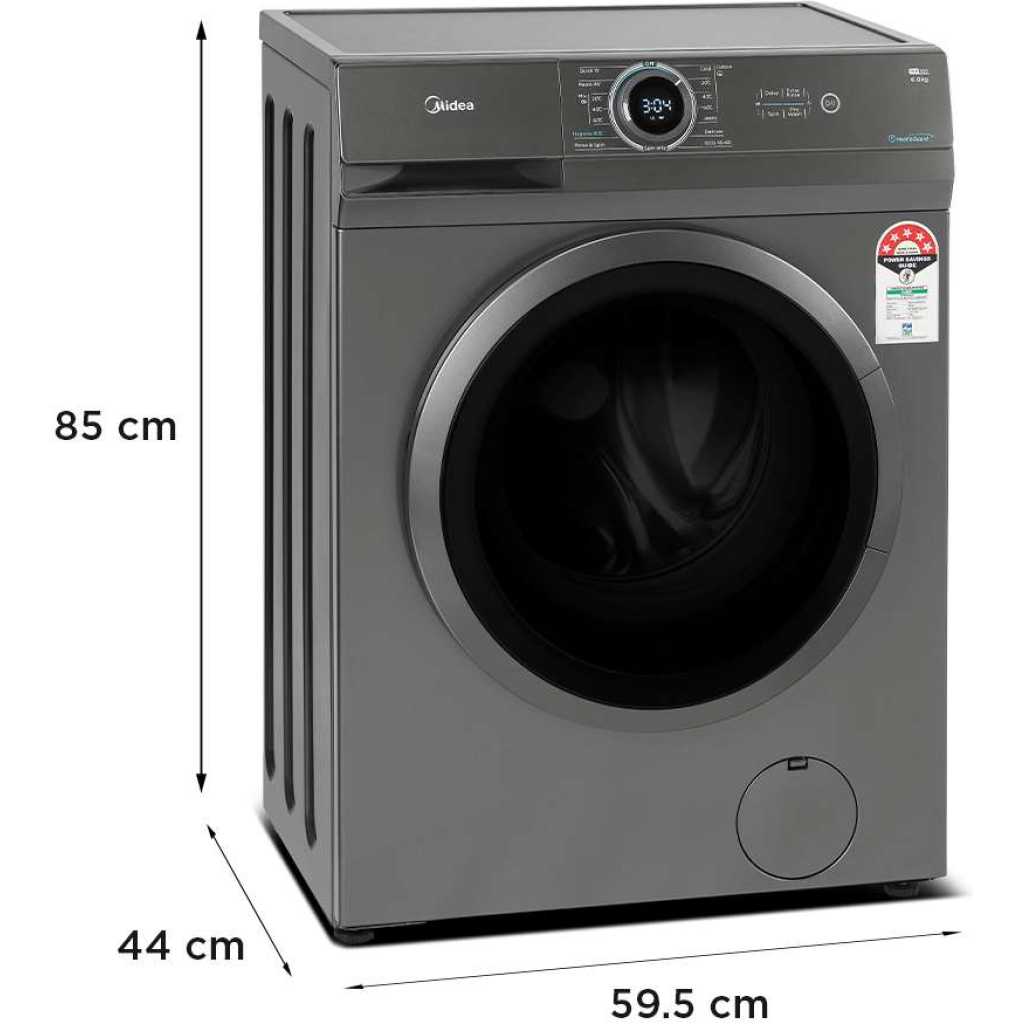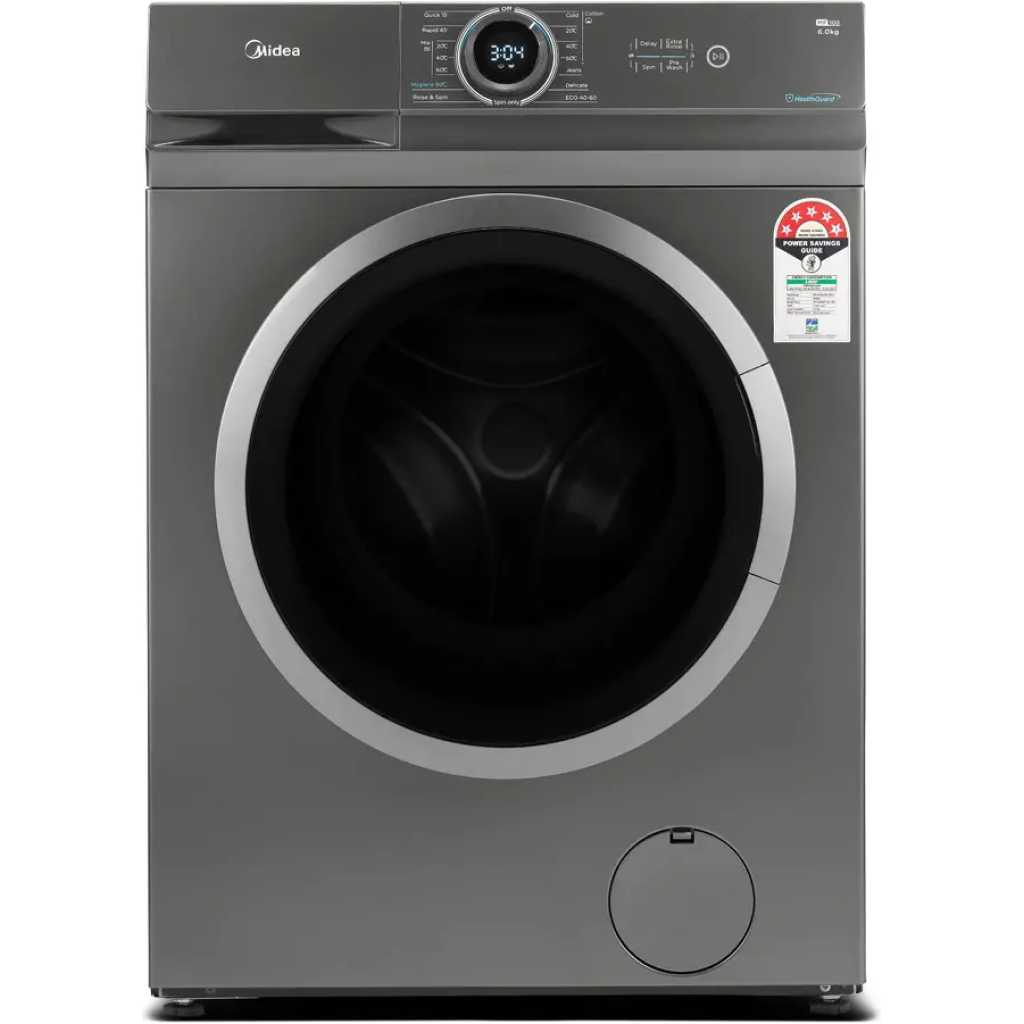 Midea 6KG Front Load Washing Machine with BLDC Inverter Motor, 1400 RPM, 15 Programs, Fully Automatic Washer with Lunar Dial, Integrated Digital Control-LED Display, Multiple Temperature MF100W60BTGCC. 1. 【 LUNAR DIAL】 The knob serves as the control center which integrates the functions of knob and screen together to facilitate your operation. Just focus on the middle of the machine and select any program and see its information at the same time 2. 【WASHER】 Front Loading Washer with a capacity of 6 kg and 14 cycles, 15 washing programs 3. 【QUICK WASH】 15 Min Quick Wash User friendly and energy efficient the new quick wash feature leaves your clothes clean in a flash 4. 【DELAY START】 Do your laundry while you sleep with the delayed start option, ensuring your favourite garments are ready for you in the morning 5. 【CHILD LOCK】 All buttons except the power button are disabled when your machine is in child lock mode. It prevents little ones from accidentally operating the machine and ensures your wash cycle runs as smooth as possible 6. Please ensure to get 4 nut bolts removed from back panel during installation for longer life of machine and avoid noise, vibration From the manufacturer
