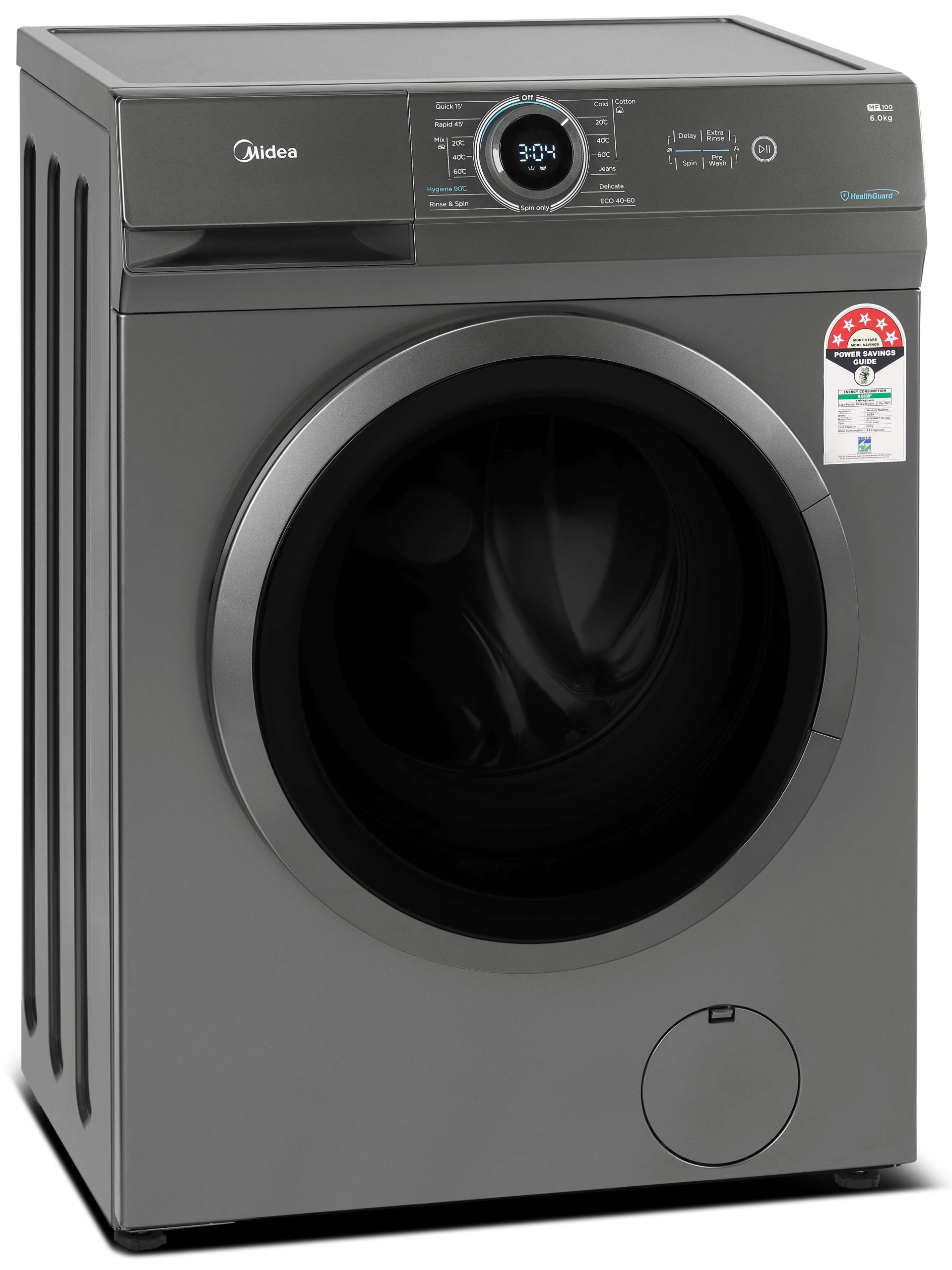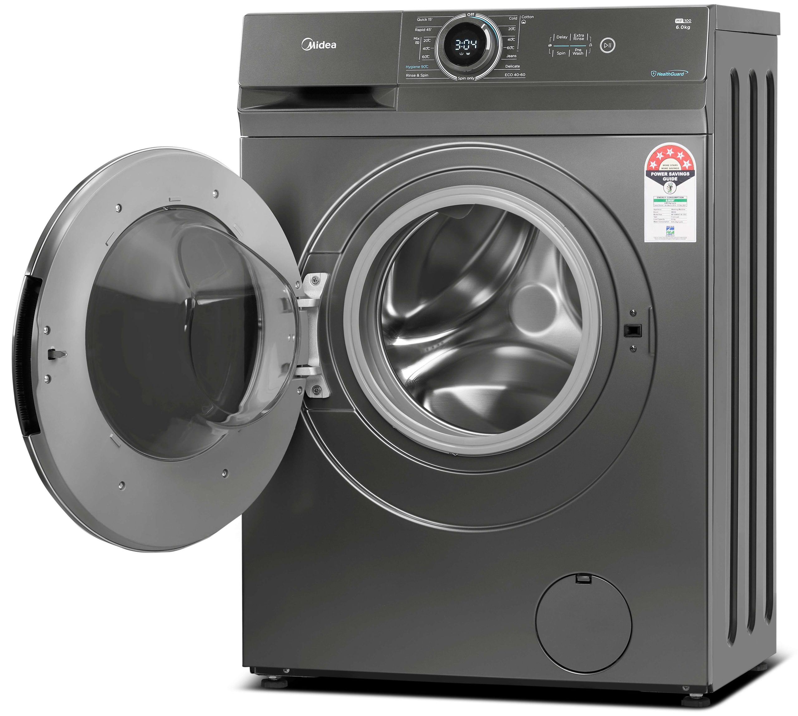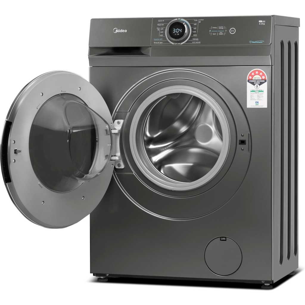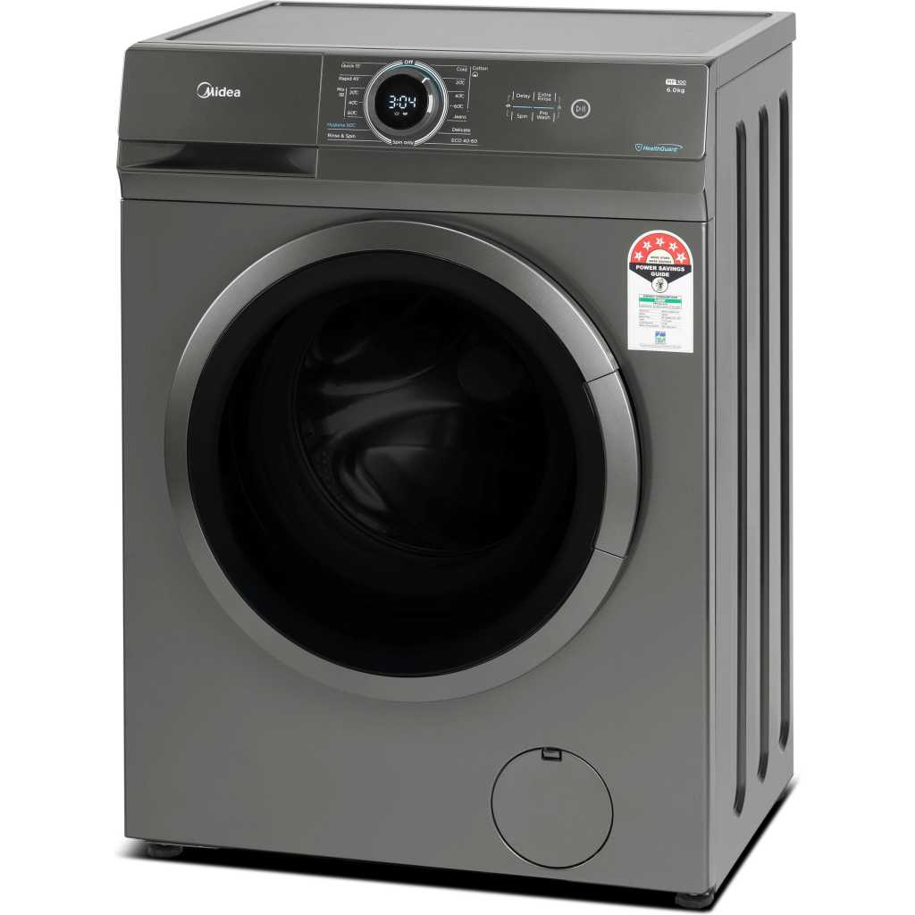 Midea 6KG Front Load Washing Machine with BLDC Inverter Motor, 1400 RPM, 15 Programs, Fully Automatic Washer with Lunar Dial, Integrated Digital Control-LED Display, Multiple Temperature MF100W60BTGCC. 1. 【 LUNAR DIAL】 The knob serves as the control center which integrates the functions of knob and screen together to facilitate your operation. Just focus on the middle of the machine and select any program and see its information at the same time 2. 【WASHER】 Front Loading Washer with a capacity of 6 kg and 14 cycles, 15 washing programs 3. 【QUICK WASH】 15 Min Quick Wash User friendly and energy efficient the new quick wash feature leaves your clothes clean in a flash 4. 【DELAY START】 Do your laundry while you sleep with the delayed start option, ensuring your favourite garments are ready for you in the morning 5. 【CHILD LOCK】 All buttons except the power button are disabled when your machine is in child lock mode. It prevents little ones from accidentally operating the machine and ensures your wash cycle runs as smooth as possible 6. Please ensure to get 4 nut bolts removed from back panel during installation for longer life of machine and avoid noise, vibration From the manufacturer