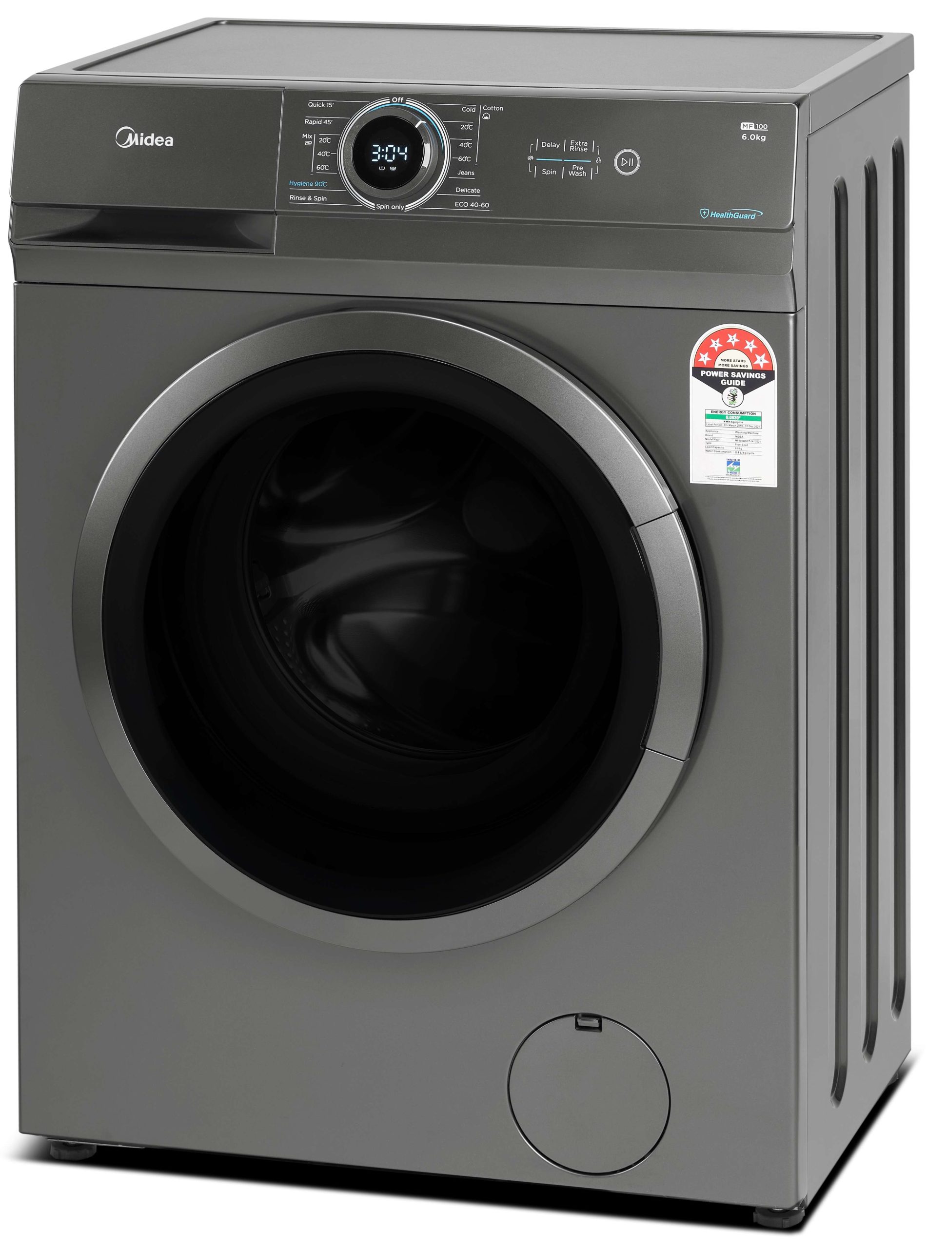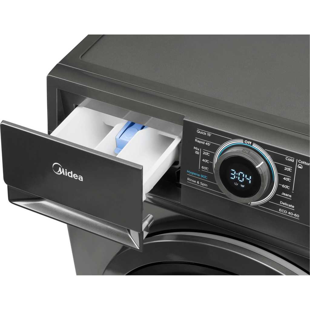 Key Features: Midea 6KG Front Load Washing Machine with BLDC Inverter Motor, 1400 RPM, 15 Programs, Fully Automatic Washer with Lunar Dial, Integrated Digital Control-LED Display, Multiple Temperature MF100W60BTGCC. 【LUNAR DIAL】 Integrated digital control – Inspired from Midea logo and glowing moon, Lunar Dial integrates programdisplay with process tracking to facilitate your operation and improve user experience 2. 【BROAD VISION PORT】 Convenient Loading and Monitoring – With the large door, bulky clothes are easy to put in and take out. Meanwhile, its modern and elegant looking embellishes the laundry corner with a sense of technology 3. 【SILENT & EFFICIENT MOTOR】 Ensure a high-efficient performance with less noise. The BLDC Inverter Quattro Motor saves up to 70% of energy and produces 10.4% less noise than normal motors. The inverter motor is also extremely durable and built to last so you could be less worried about maintenance 4. 【ONE TOUCH PRE-WASH】 Solution to Heavily Soiled Laundry – Adding Pre-Wash program by just one step, badly messed clothes will be soaked and gently washed before main cycle to optimize the cleaning performance for heavily soiled laundry and achieve the best washing result 5. 【MUTE THE BEEP】 Disturbance-free Operation – Pressing Delay & Spin simultaneously, the operating beeps will be muted for you to do the laundry without disturbing your family when returning home late 6. 【HYGIENE 90° C】 Enhanced Cleaning & Sterilization – Stubborn stains, detergent residues and harmful germs are thoroughly removed when choosing the Hygiene 90° C mode, which is beneficial for children and elders who are especially sensitive to allergies 7. Please ensure to get 4 nut bolts removed from back panel during installation for longer life of machine and avoid noise, vibration