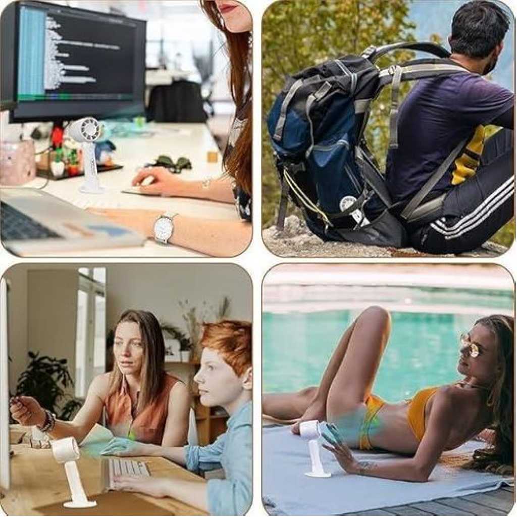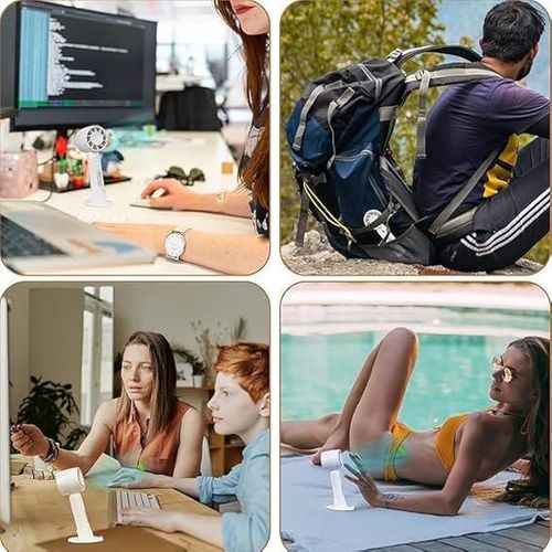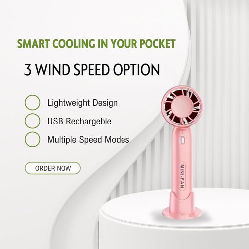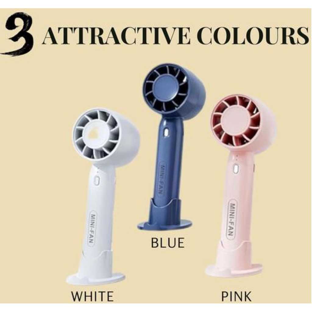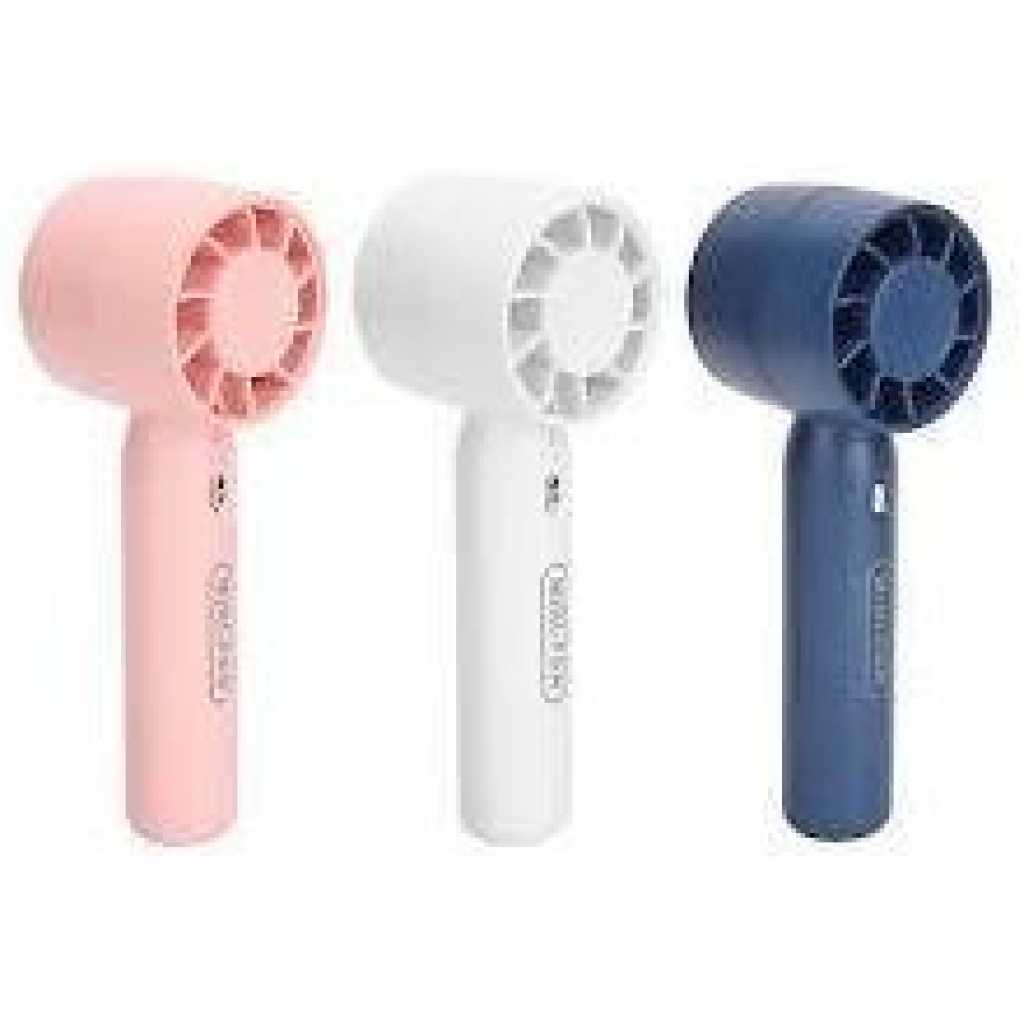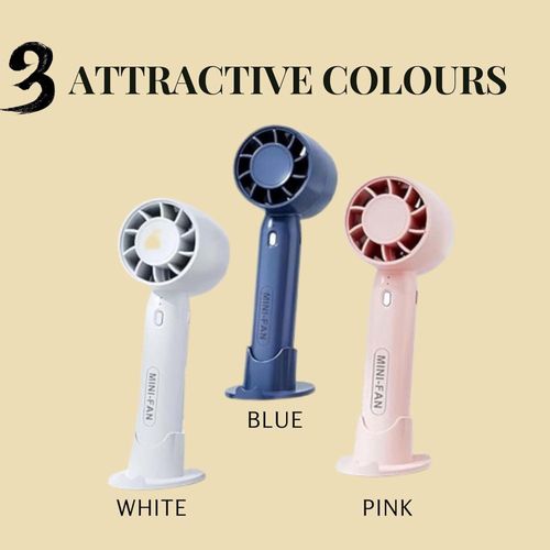 Key Features: VERSATILE DESIGN: Portable handheld fan with convenient desktop stand functionality, perfect for both stationary and on-the-go cooling needs COLOUR OPTIONS: Available in three stylish colours – classic white, navy blue, and soft pink to match your personal style COMPACT SIZE: Lightweight and portable design measuring 6.3 cm in width, making it ideal for travel, office, or home use EASY OPERATION: Simple one-button control for straightforward operation, featuring an ergonomic grip for comfortable handling DUAL-USE FUNCTIONALITY: Transforms from a handheld personal cooling device to a stable desk fan with its built-in stand base