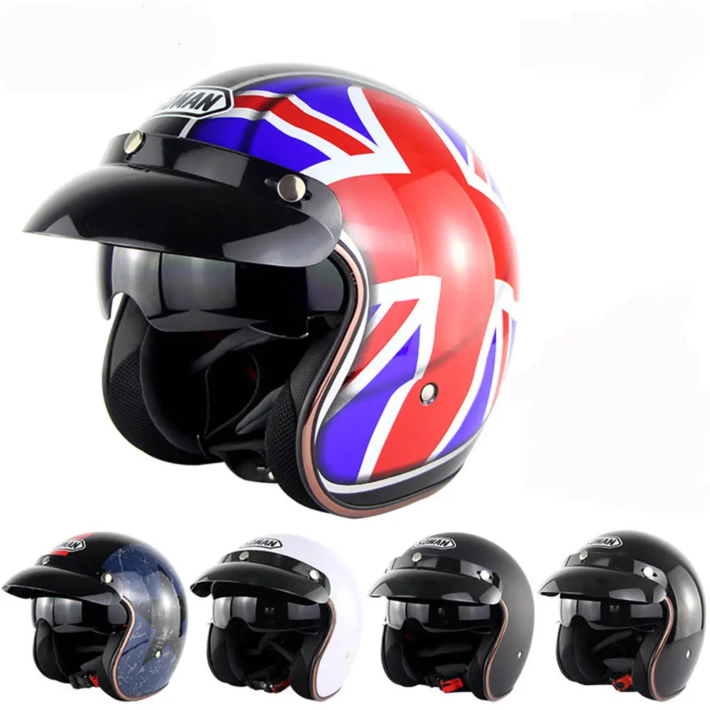 Motorcykel Scooter Sommer Halv ansigt Retro Hjelm med Anti-UV Briller