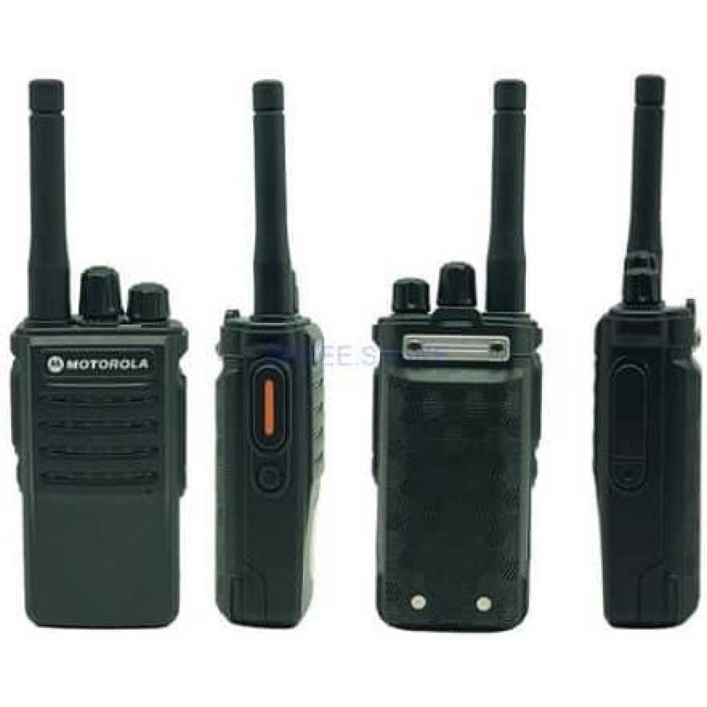 Key Features: Number of Channels: 16 Channels Dimensions (W x H x D) Height x Depth): 50 x 120 x 25 mm. The kit includes a body, antenna, battery, adapter, table charger, Up to 36 hours talk time with handset back – 5:5:90 – Call waiting time is 10-15 days – Motorola GP-1000 Talk Radio Widget + Inner (crowded area) city 2 – 3 km. + Outskirts (free area) 3 – 5 km + Ideal condition 7 – 10 km For 25-40 story buildings, UHF frequency is very good. > What is a walkie-talkie or two-way radio? Two-way radios or walkie-talkies are handheld or portable radios. They communicate wirelessly on a single, shared frequency band