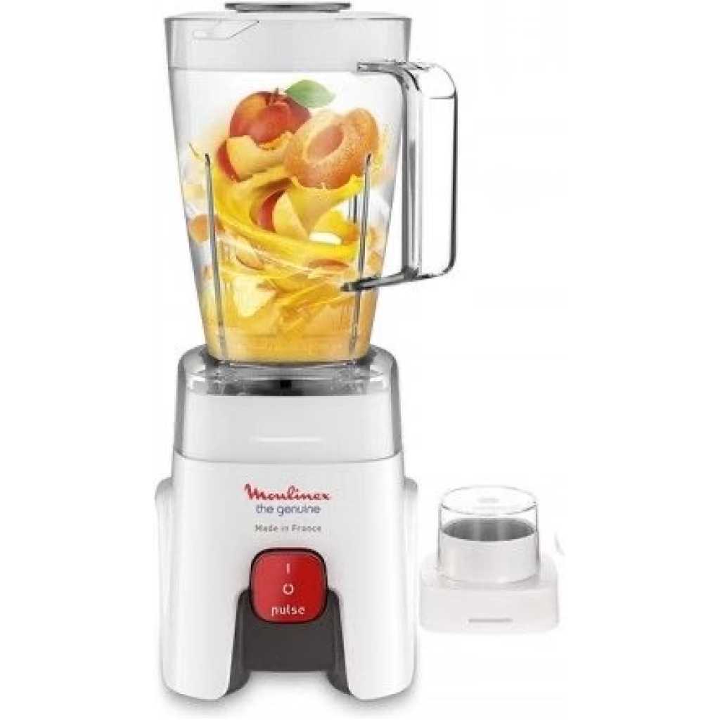 Key Features: Moulinex Blender LM241B27- 500Watts – White – France 500 Watts Blender & Grinder Attachment 1 Speed + Pulse up to 20% more efficient Made in France