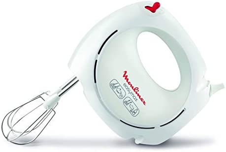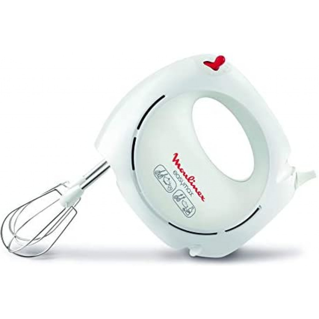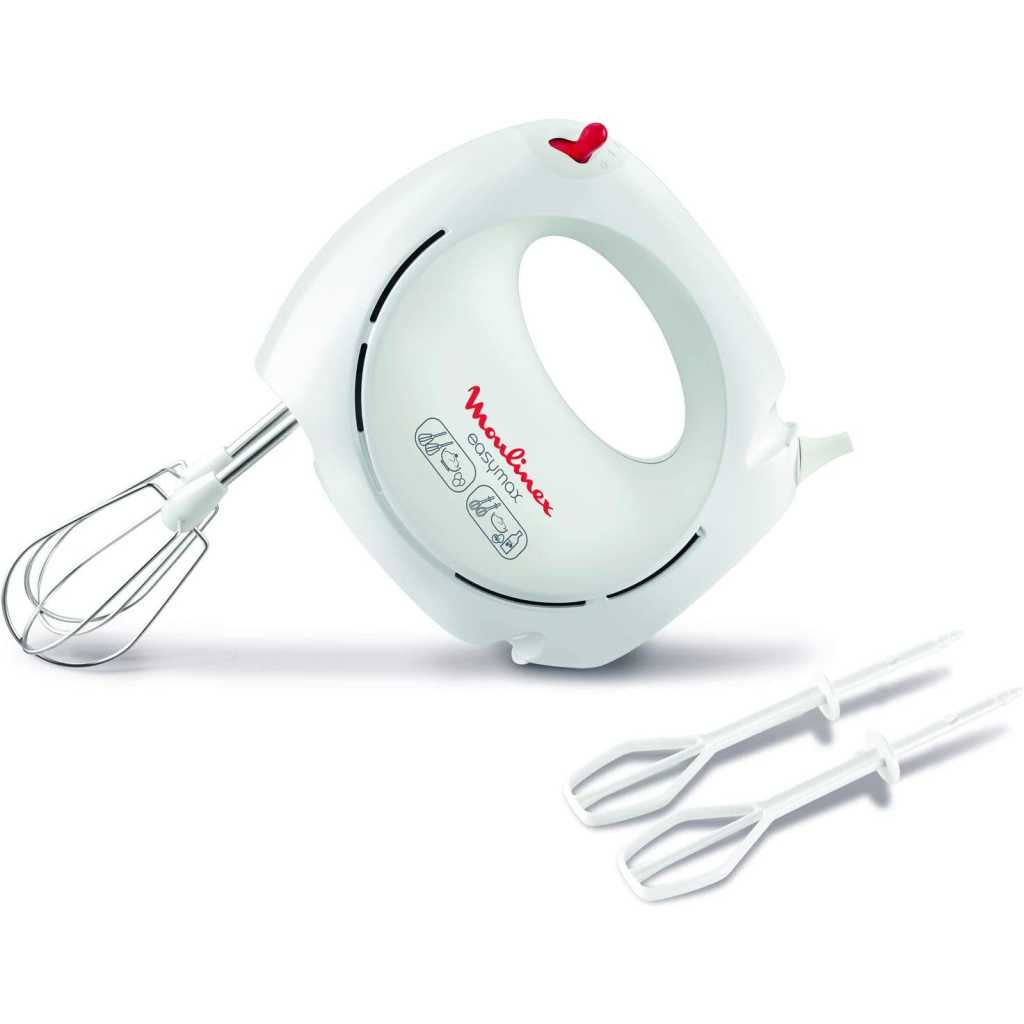 Key Features: Moulinex Easy Max Hand Mixer, 200 Watts, White, Plastic/Stainless Steel, Hm250127 Easymax hand mixer always at hand 5 speed settings and a 200W motor for quick and easy beating egg whites and whipping cream 2 sets of beaters (plastic and stainless steel) for batters, cakes mixes, whipped egg whites and cream Ergonomic with all controls in easy reach Compact, always at hand when needed and easy to store in your kitchen