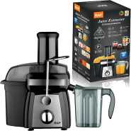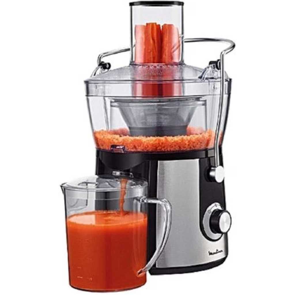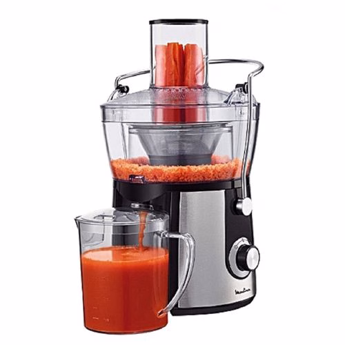 Key Features: Moulinex Juice Express Centrifugal Juice Extractor, Multi-Colour, 2 Liters, JU550D27 Ultimate power: 800 W of power for effortless, homemade juice every day. High capacity for up to 2 litre of juice. Large 75 mm feeding tube: no need to chop or peel fruits and vegetables before use. Easy to clean: thanks to built-in pulp tank and streamlined construction. 1.4 L transparent pulp container: to easily monitor the filling level. Dual-speed: two versatile speeds adapt to hard or delicate ingredients. Maximum safety: anti-slip feet ensure stability and large metal security handle prevents accidental slippage. Dishwasher-safe removable parts and dedicated cleaning-brush Easy to store: compact size with built-in pulp tank