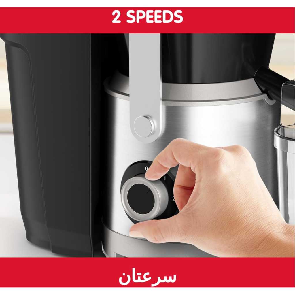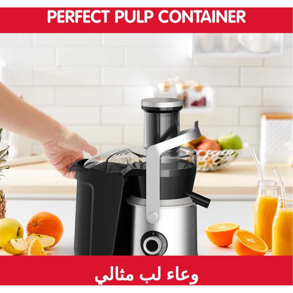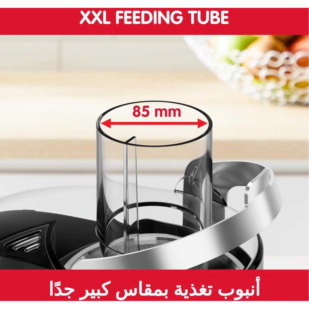 Key Features: XXL FEEDING TUBE: An easy-to-use juicer equipped with an extra-wide (85 mm) feeding tube for perfect fresh juice at home with less chopping and pre-cutting of fruits and veggies DRIP-STOP DESIGN: Discover mess-free juicing that couldn’t be easier with the drip-stop function designed to prevent countertop splashes after your juice has been prepared. ALUMINIUM HANDLE: Robust performance, easy handling/storage and dependable use day after day thanks to the high-quality aluminum handle and stainless steel accents on the housing. 2 SPEEDS: A juice extractor designed for total ease and versatility, with two speeds to cover all your juicing needs. 15-YEAR REPAIRABILITY: Low-cost parts available in our 6200 repair centers worldwide, for quick repair over many years—part of our commitment to help protect the environment and cut down on waste. PERFECT PULP CONTAINER: The 2.2 L pulp container ensures enough space for generous juicing, with an ergonomic design for effortless emptying. LARGE CAPACITY: The 0.8 L capacity is ideal for a wide variety of occasions—single servings, sharing with family members and entertaining guests—with a foam separator for a flawless final product. WHAT’S IN THE BOX: Nutri XXL Juicer, 0.8 L juice container.