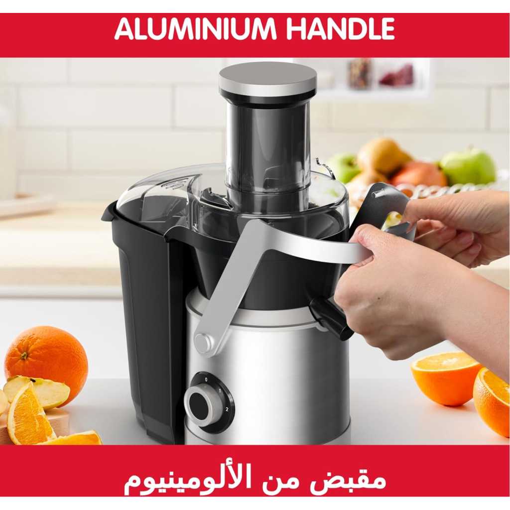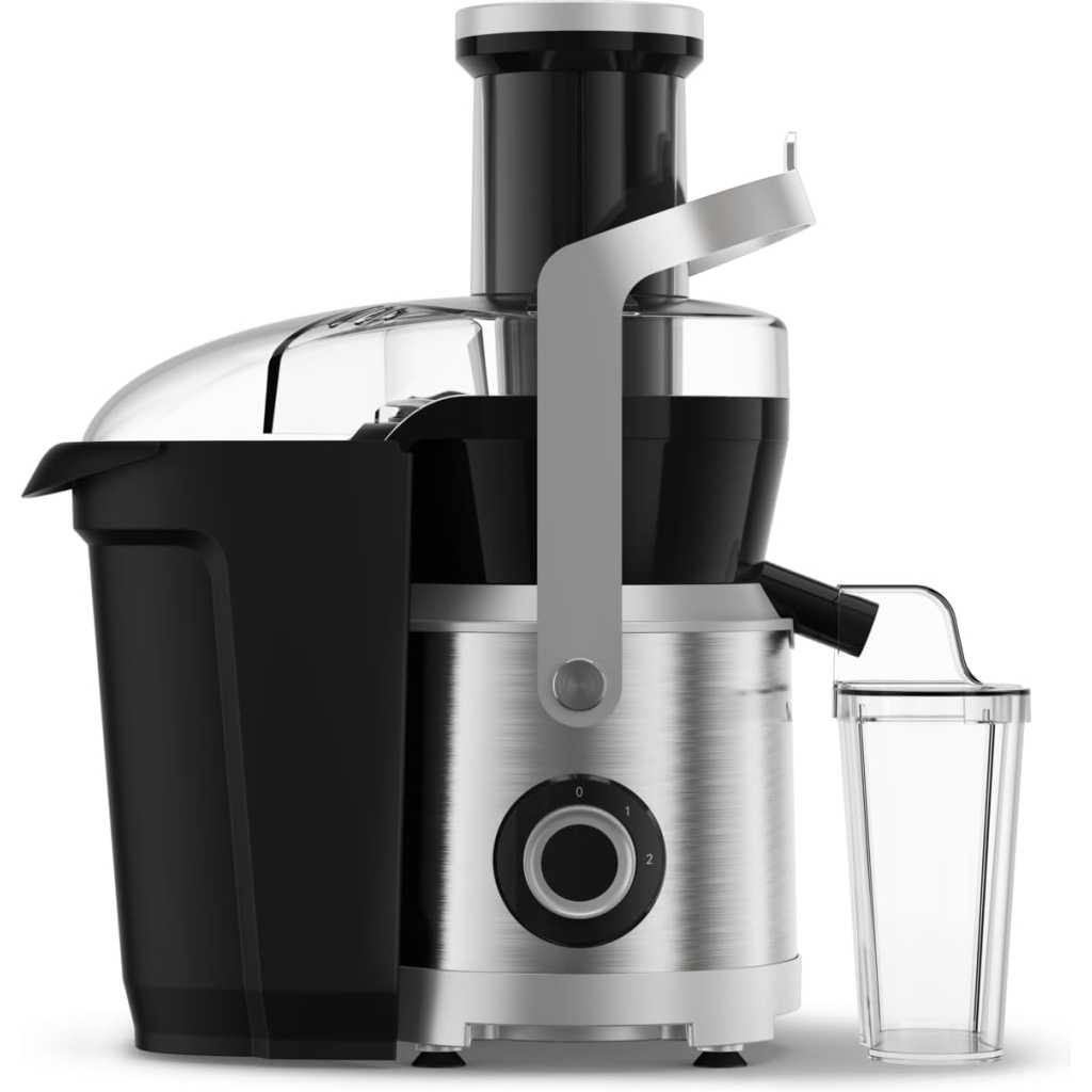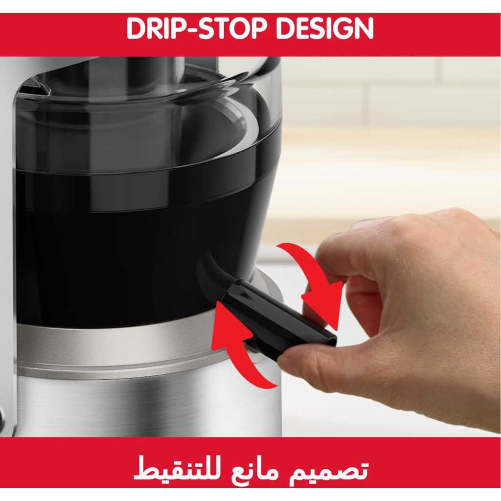 Key Features: XXL FEEDING TUBE: An easy-to-use juicer equipped with an extra-wide (85 mm) feeding tube for perfect fresh juice at home with less chopping and pre-cutting of fruits and veggies DRIP-STOP DESIGN: Discover mess-free juicing that couldn’t be easier with the drip-stop function designed to prevent countertop splashes after your juice has been prepared. ALUMINIUM HANDLE: Robust performance, easy handling/storage and dependable use day after day thanks to the high-quality aluminum handle and stainless steel accents on the housing. 2 SPEEDS: A juice extractor designed for total ease and versatility, with two speeds to cover all your juicing needs. 15-YEAR REPAIRABILITY: Low-cost parts available in our 6200 repair centers worldwide, for quick repair over many years—part of our commitment to help protect the environment and cut down on waste. PERFECT PULP CONTAINER: The 2.2 L pulp container ensures enough space for generous juicing, with an ergonomic design for effortless emptying. LARGE CAPACITY: The 0.8 L capacity is ideal for a wide variety of occasions—single servings, sharing with family members and entertaining guests—with a foam separator for a flawless final product. WHAT’S IN THE BOX: Nutri XXL Juicer, 0.8 L juice container.