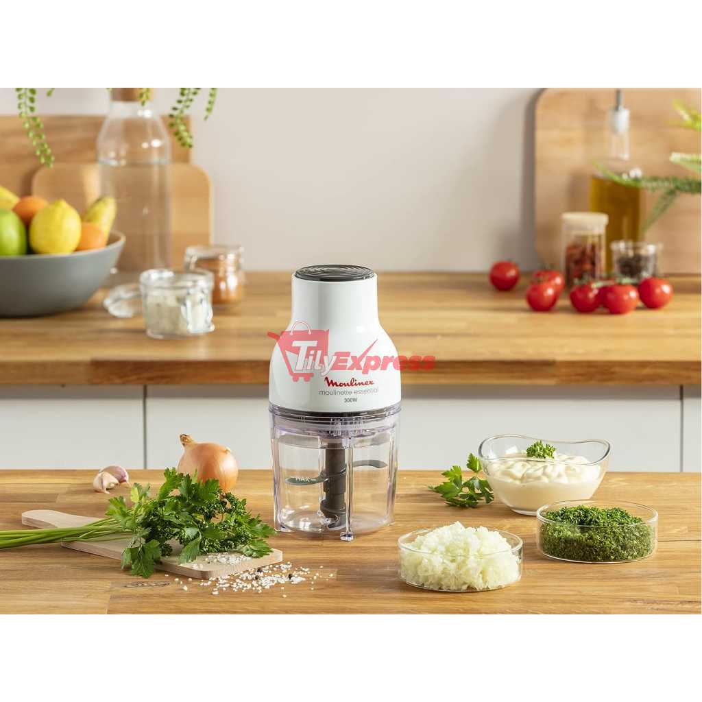 Moulinex Moulinette Essential Chopper, 300 watts, Plastic, DJ520127 – White /Black. From the manufacturer Description: With it’s 4 sharp blades, the Moulinette Essential can effortlessly mince, chop and mix all kind of ingredients. A simple pressure on the top for easy and quick results. The device is also easy to clean, with it’s smoother surface and removable parts, and also easy to store. Moulinex enables you to vary your daily pleasures while having fun cooking good food. Your time spent in the kitchen becomes easy with simple-to-use and effective products adapted to your modern life. Moulinex innovates and constantly reinvents itself, providing you with products designed for all your daily needs. Our goal at Moulinex is to facilitate and enrich your daily life. We achieve this by creating new products and services that make domestic life more pleasant, more harmonious and more fulfilling.