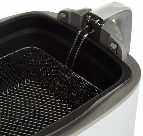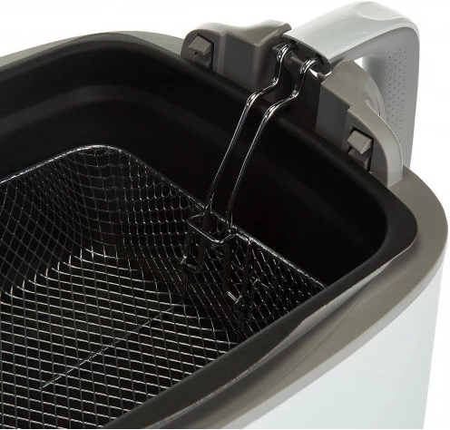 Moulinex Super Uno Access 2.2 Litre Deep Fryer, 1800 Watts, White / Grey, Plastic, AM310028 For all your favorite fried delights cooked to crispy, golden-brown perfection, the Moulinex Super Uno Access electric deep fryer makes perfect results effortless. The removable non-stick bowl, basket, handle and lid are all dishwasher-safe for maximum convenience, while the removable odor filter ensures less frying smells in the kitchen. This high-performance deep fryer offers generous portions for up to six people, with a capacity of 2.2 L of oil producing up to 1.5 kg of irresistible fried treats. The adjustable thermostat up to 190 °C lets you master all your favorite snacks and side dishes with total ease: perfectly crispy golden-brown fries, buttermilk fried chicken, mozzarella sticks, fritters, sweet potato fries, and so much more.