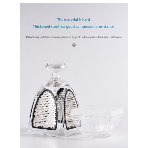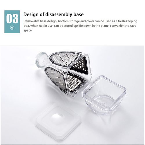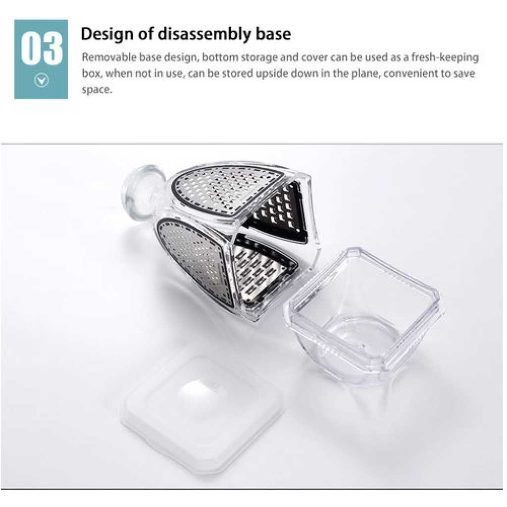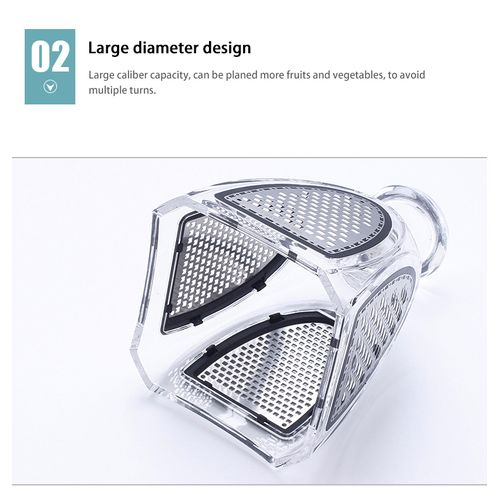 Key Features: Multi-Function 4 Blade Grater For Vegetables Potato Shredder Cheese Cutter – Silver. Also suitable for shredding ingredients Soft grip handle Non-slip base Stainless steel construction Dishwasher safe Measures 5.13″ diameter x 9.25″ H Limited lifetime manufacturer’s warranty Imported Stainless steel Stainless Steel Lifetime warranty Imported Dishwasher safe 1 piece set Handles Extended Hand-Grip BPA Free – Yes
