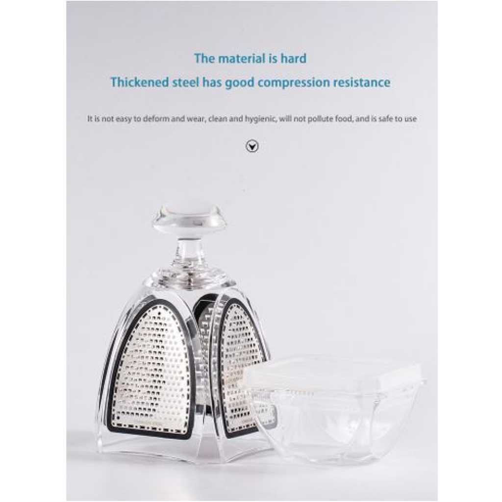 Multi-Function 4 Blade Grater For Vegetables Potato Shredder Cheese Cutter – Silver. A well-made version of a kitchen classic, this is the best box grater we’ve tried. Each side has a distinct pattern of cutters, covering a range of duties from coarse grating and fine zesting to slicing fruits and vegetables quickly and consistently. The raised teeth have been chemically etched to a sharp edge for ease of cutting; the pattern of shallow grooves on each face of the grater allows foods to release easily. Volume markings (in cups and millilitres) let you gauge quantities without having to use a measuring cup. The tall grater is solidly constructed from thick stainless steel with a wire frame for rigidity, and has a comfortable non-slip handle. Dishwasher safe.