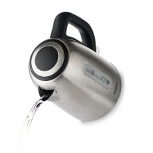 Key Features: Mylongs Electric 2.2L BPA Free Glass Kettle Cordless 360° Base, Stylish Blue LED Interior, Handy Auto Shut-Off Function – Quickly Boil Water For Tea and more, Stainless Steel 2.2-liter capacity glass kettle with blue LED illuminated interior. Voltage: 120 V Auto Shut-Off when kettle reaches a boil or runs out of water Large pouring spout with mesh filter for perfect, spill-proof pours 360-degree swivel base with wrap-around cord storage Convenient on/off switch to quickly boil up to 2.2-liter of water Concealed heating element to quickly and safely boil hot water for a variety of uses Exterior water level indicator for convenient filling