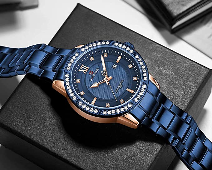 Key Features: NAVIFORCE Diamond Stainless Steel Analog Quartz Watches for Men Waterproof Watch. Japanese quartz movement: High quality Japanese quartz movement which can provide precise timekeeping, including the date display. 3ATM waterproof: Experimentally certified 3ATM waterproof, give your watch water droplets isolation and rain resistance. But please note that do not wear it in your bathing, swimming, or diving. High-quality materials: There is a high-strength mineral glass on the case which can offer scratch protection. The stainless steel band is comfortable on your wrist, durable and adjustable, which is great for daily wear. High-quality materials: The top quality and flexible stainless steel watch band, by IP plated technology, roman numeral and shiny diamond on the watch dial, show special gentleman taste. GIFT: Wristwatches for men is the perfect gift for festivals, families, and meetings. Quartz watches are a luxurious fashion gift for graduation, birthday, wedding, and valentine’s day!
