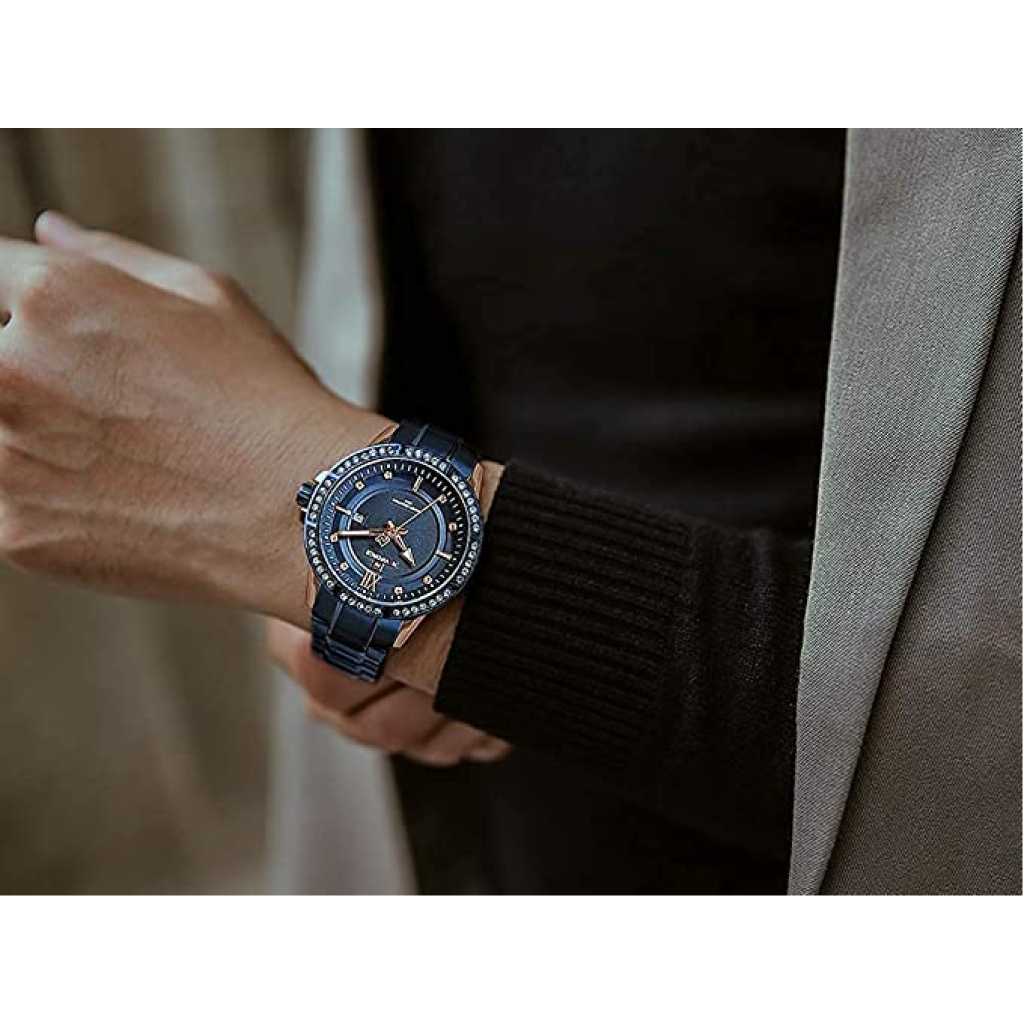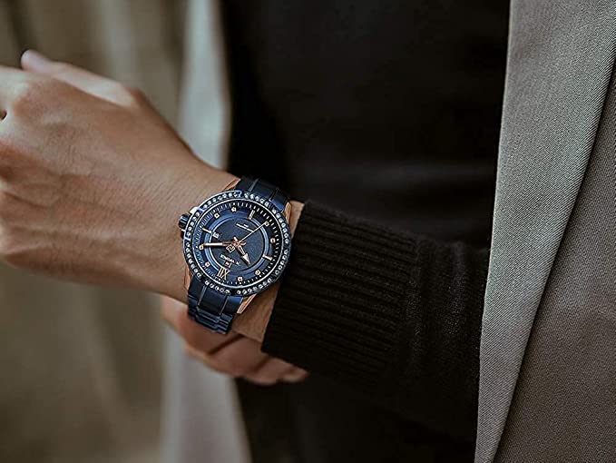 NAVIFORCE Diamond Stainless Steel Analog Quartz Watches for Men Waterproof Watch. Japanese quartz movement: High quality Japanese quartz movement which can provide precise timekeeping, including the date display. 3ATM waterproof: Experimentally certified 3ATM waterproof, give your watch water droplets isolation and rain resistance. But please note that do not wear it in your bathing, swimming, or diving. High-quality materials: There is a high-strength mineral glass on the case which can offer scratch protection. The stainless steel band is comfortable on your wrist, durable and adjustable, which is great for daily wear. High-quality materials: The top quality and flexible stainless steel watch band, by IP plated technology, roman numeral and shiny diamond on the watch dial, show special gentleman taste. GIFT: Wristwatches for men is the perfect gift for festivals, families, and meetings. Quartz watches are a luxurious fashion gift for graduation, birthday, wedding, and valentine’s day!