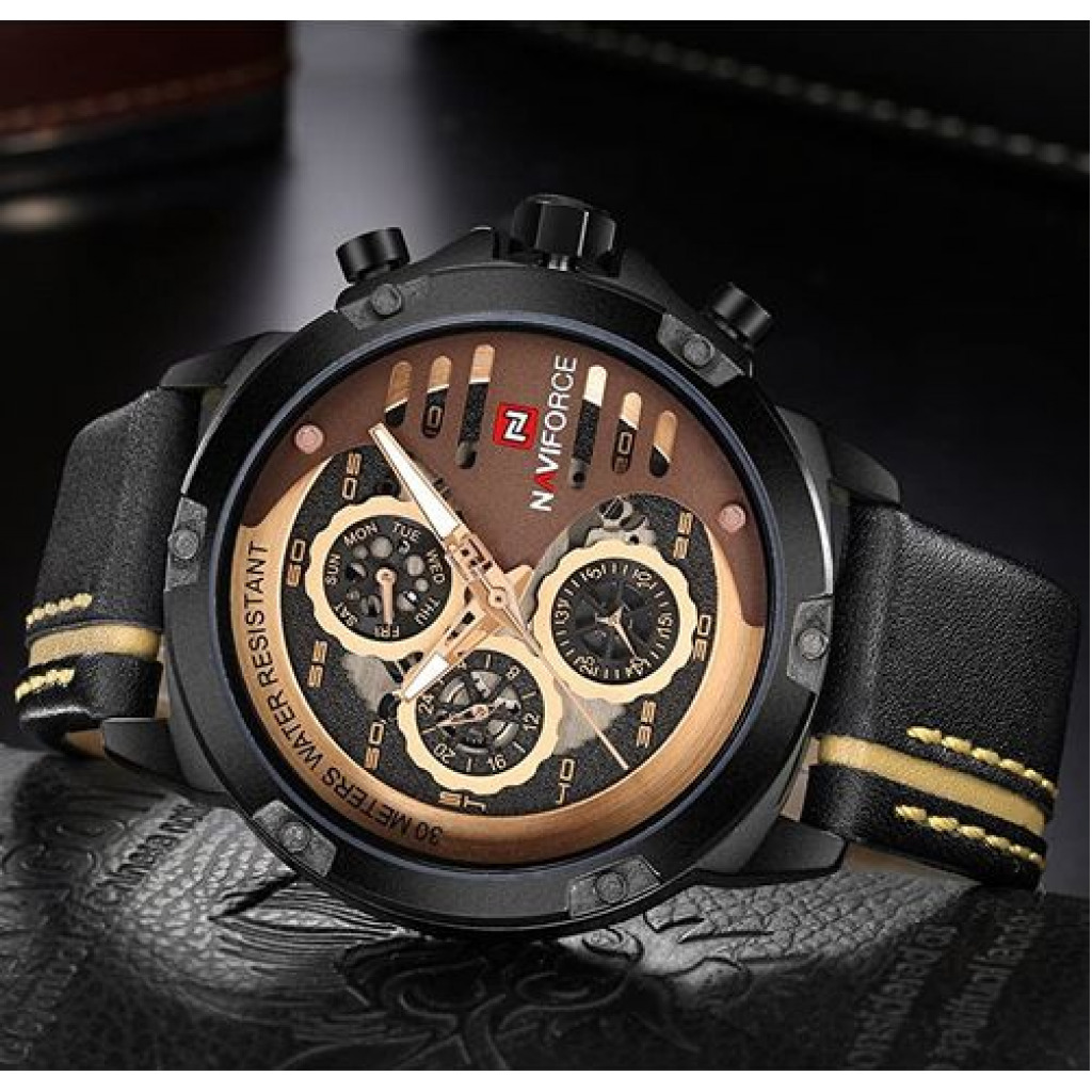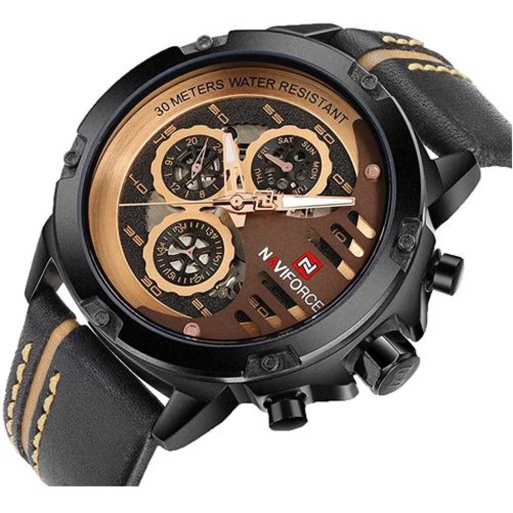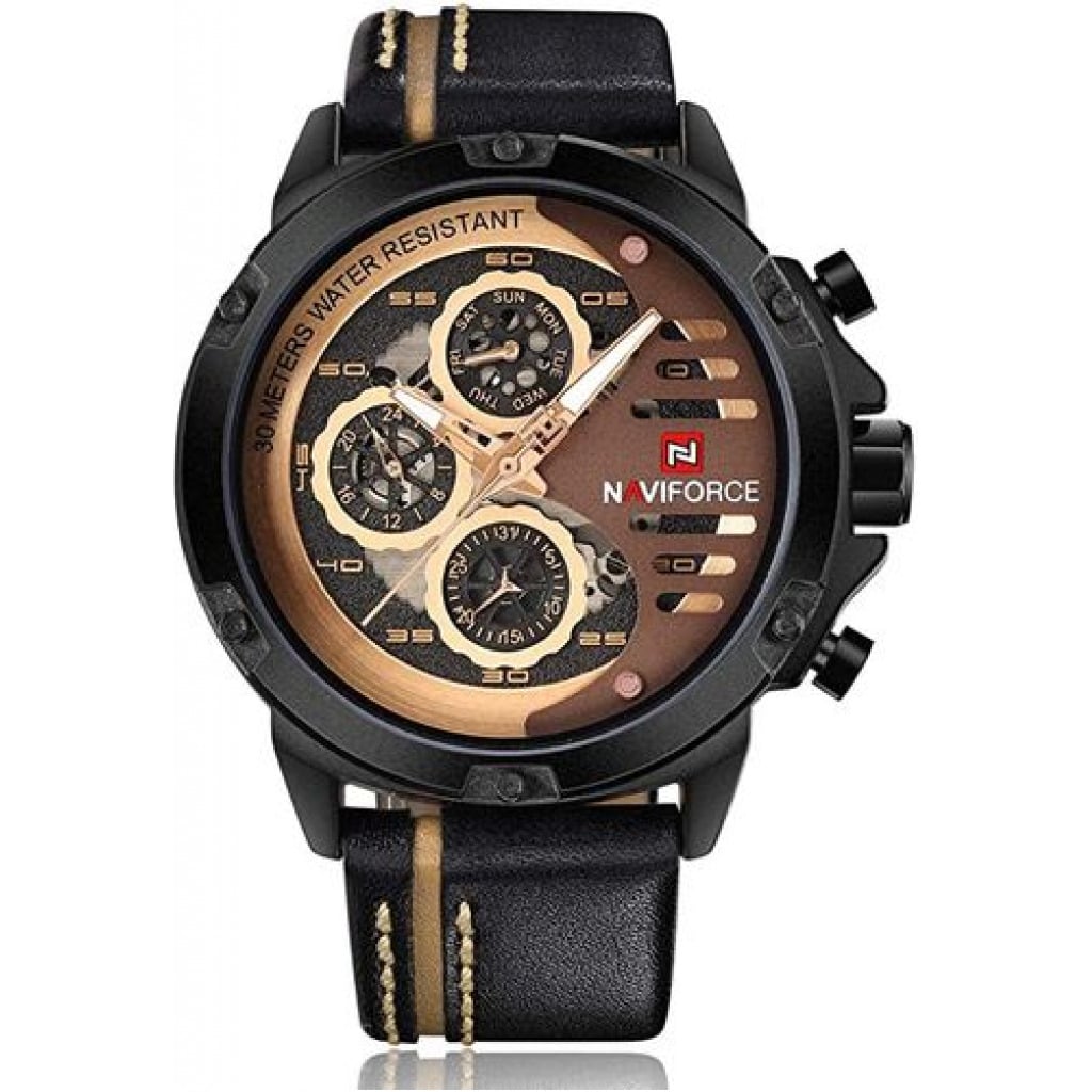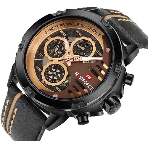 Key Features: Brand Naviforce Analog Date display Leather Strapped Color black