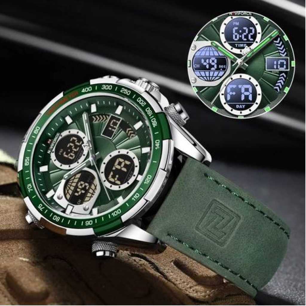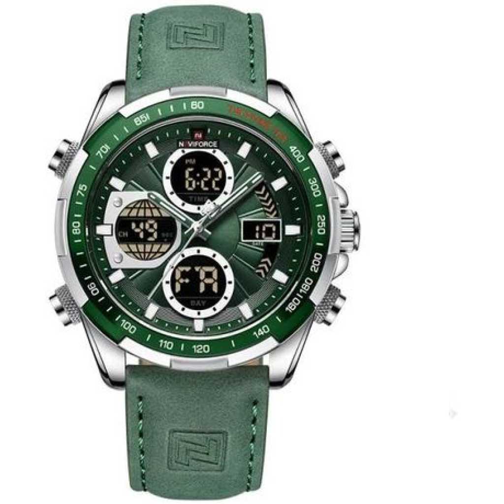 Key Features: Naviforce Leather Strapped Office And Casual Water Proof Watch – Green. Brand naviforce Leather Strapped Digital And Analog Waterproof Alarm