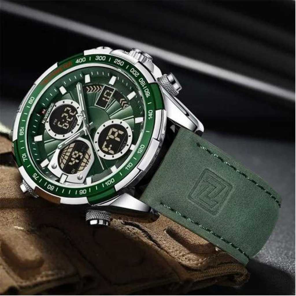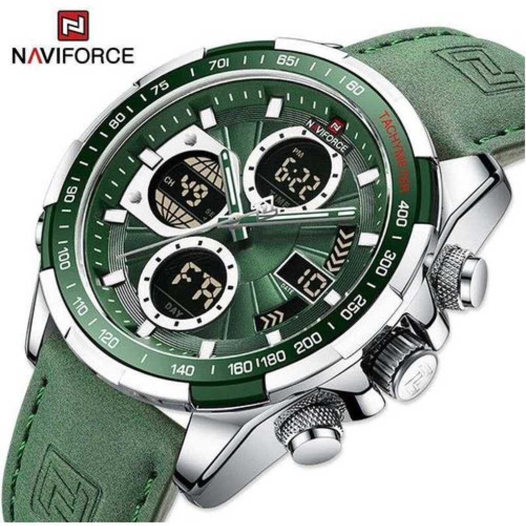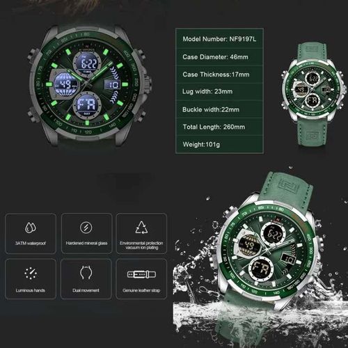 Key Features: Naviforce LED Dual Display Waterproof Men’s Watch – Green, Silver Color green Digital Analog Leather Strapped