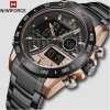 Key Features: Naviforce Luxury Waterproof Digital And Analog Watch – Black Brand Naviforce Stainless Steel Digital And Analog Black light Waterproof
