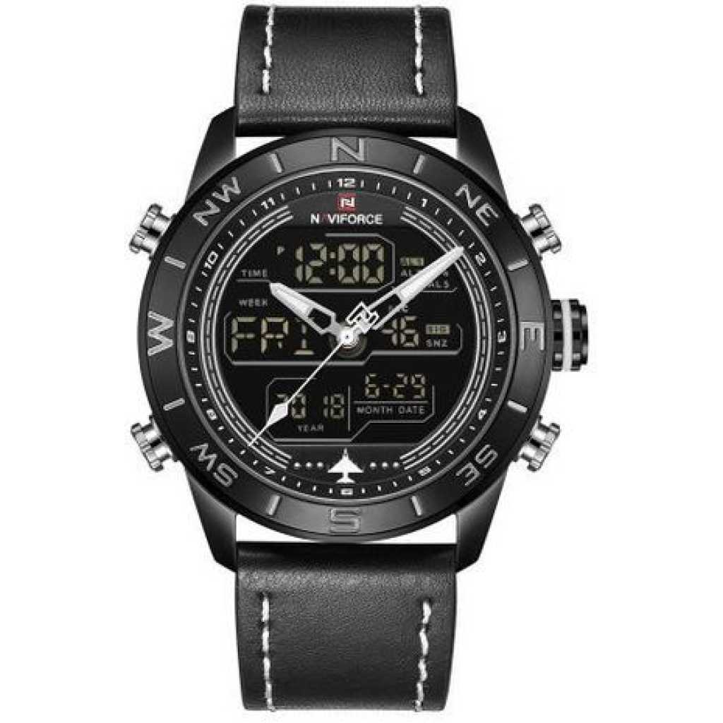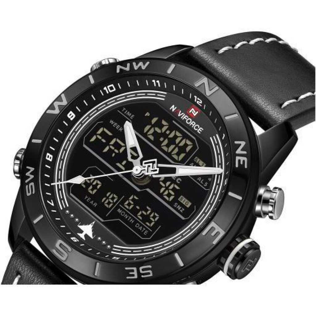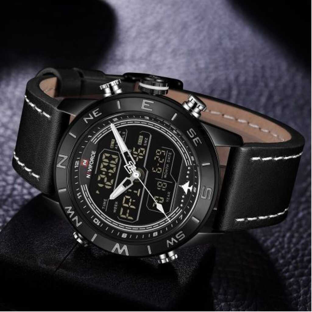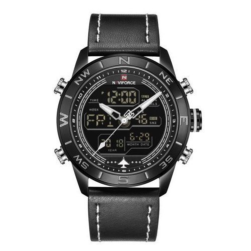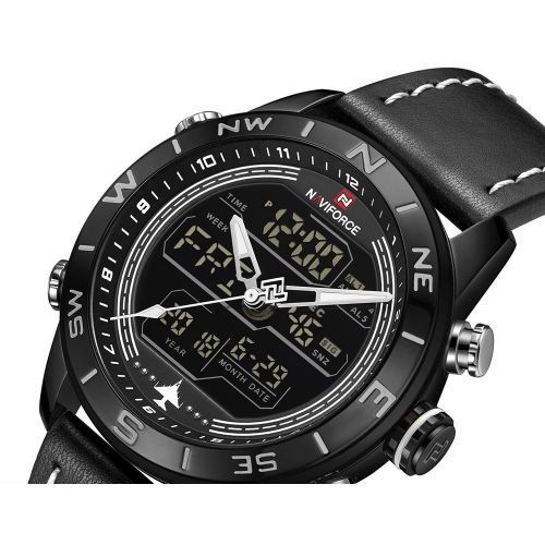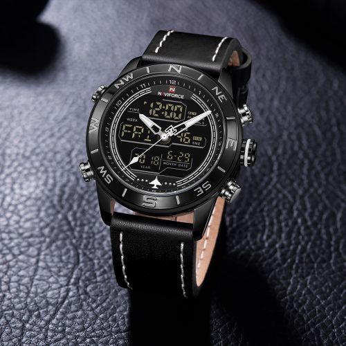 Key Features: Naviforce Men’s Dual Display Leather Straps Designer Watch. Color: Black. Gender: Men. Strap Material: PU Leather. Brand: Naviforce. 100% New and high quality.