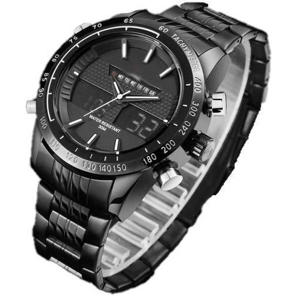 Naviforce Men’s Stainless Steel Dual Wrist Designer Watch – Charcoal Grey. Men’s Stainless Steel Dual Wrist Watch – Charcoal Grey This luxury wristwatch features a steel case, stainless steel strap, and a clean dial. It is the perfect finish for any outfit. Buy now online from TilyExpress Uganda at the best price and have it delivered right to your doorstep. Exclusive on TilyExpress!