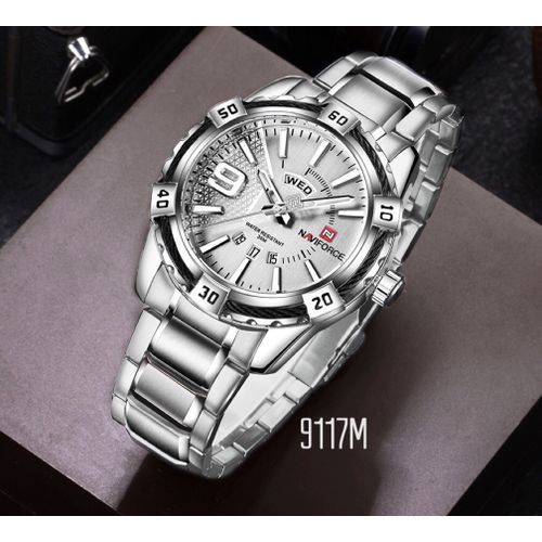 Naviforce New Luxury Brand Waterproof Professional Chain Designer Watch – Silver. Style:Fashion & Casual. Feature: Water Resistant. Band Length:9.45inch. Case Thickness:13mm. External Product ID: 123. Type: Sport Watch. Display Type: Analog. External Product ID Type: Not Available. Model Number: N9117SSTY5. Dial Case Diameter Size: M (26 – 39 mm). Targeted Group: Men. Brand: Naviforce. Band Material: Stainless Steel. Watch Shape: Round. Key Features: Naviforce New Luxury Brand Waterproof Professional Chain Designer Watch – Silver. Style:Fashion & Casual. Feature: Water Resistant. Band Length:9.45inch. Case Thickness:13mm. External Product ID: 123. Type: Sport Watch. Display Type: Analog. External Product ID Type: Not Available. Model Number: N9117SSTY5. Dial Case Diameter Size: M (26 – 39 mm). Targeted Group: Men. Brand: Naviforce. Band Material: Stainless Steel. Watch Shape: Round.