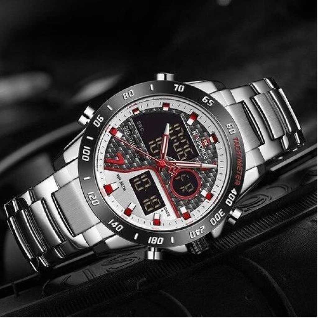 Naviforce Stainless Analog And Digital Watch For Men – Silver Men’s Quartz Waterproof Watches – Silver. This Waterproof Watch is crafted with precision for an elegant update to your accessories. It embodies a classic style with a color to suit everyone. This watch is ideal for ensuring every outfit is effortless and stylish.