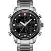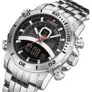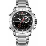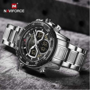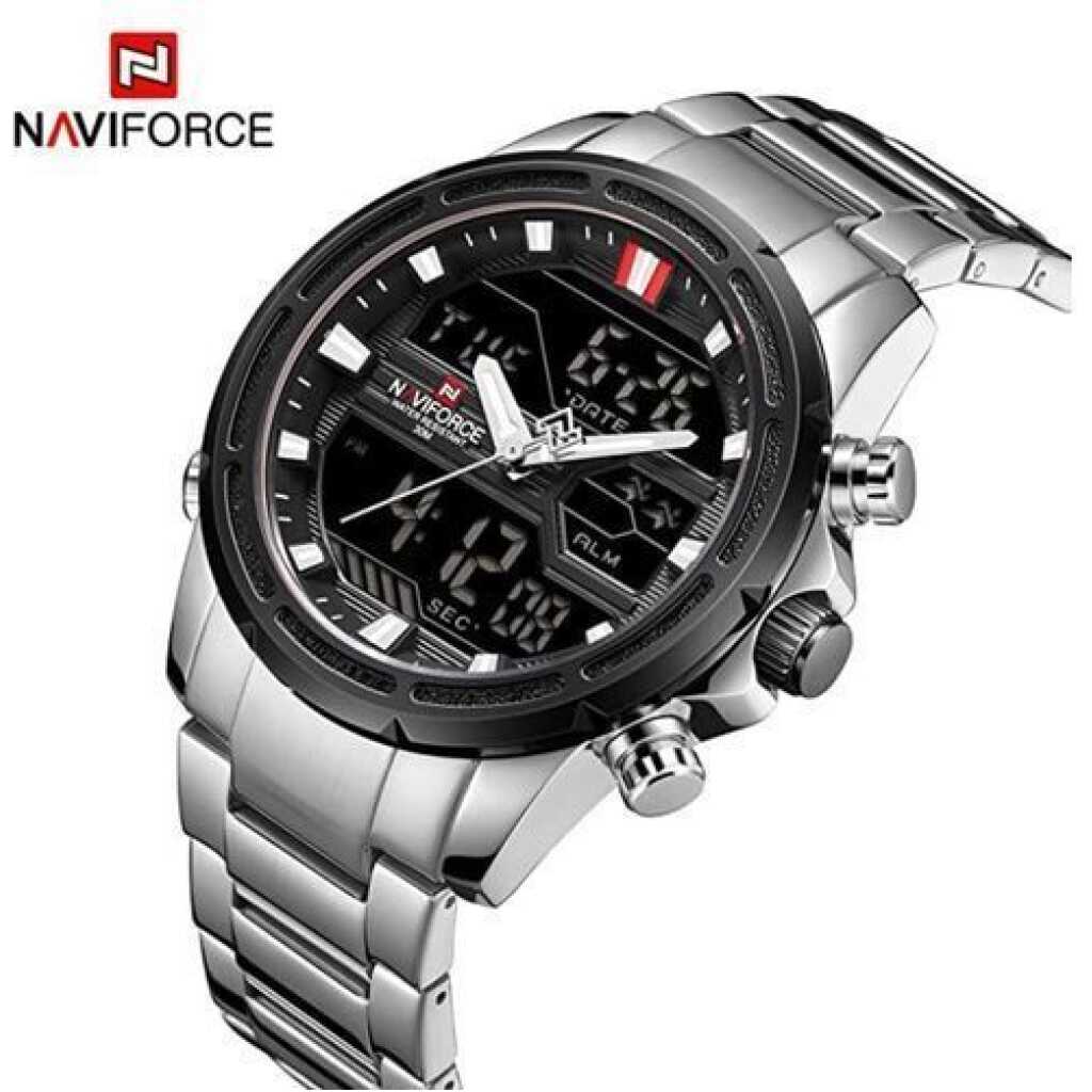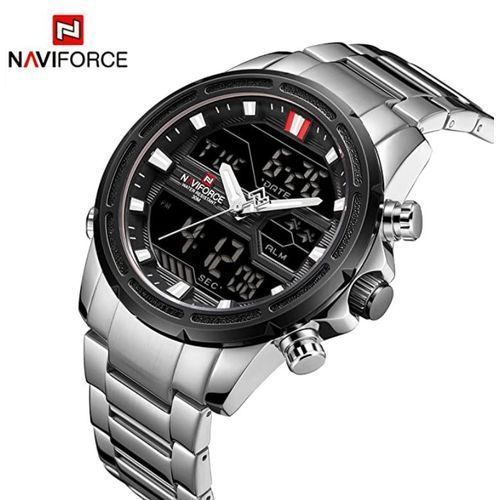 Key Features: Naviforce Stainless Steel Analog And Digital Water Proof Men’s Watch – Silver. Color: Silver. Strap Material: Stainless steel. Display Type: Analog. Closure: Folding clasp. It’s waterproof.