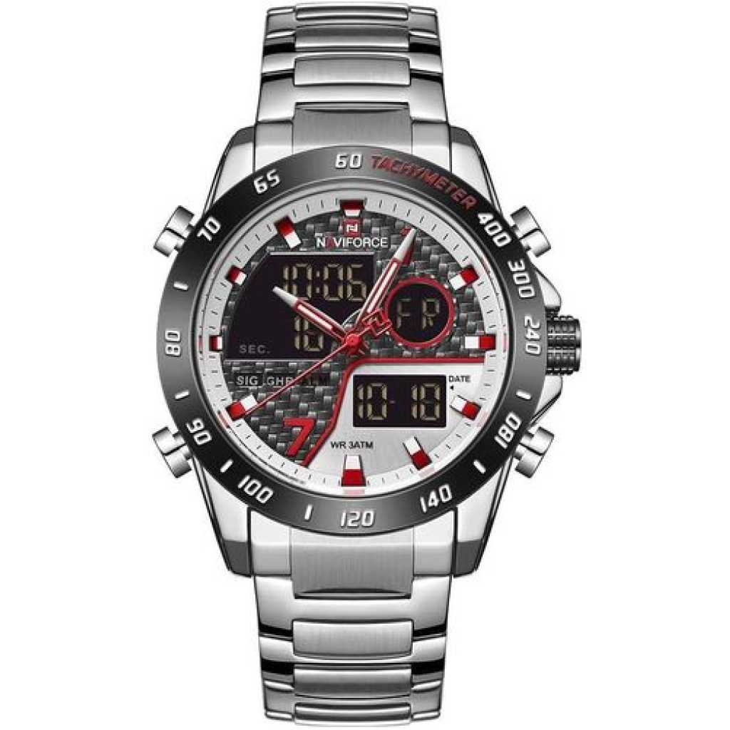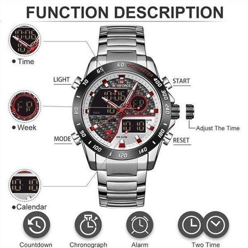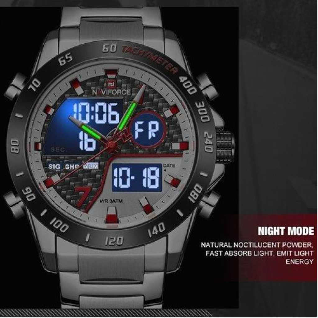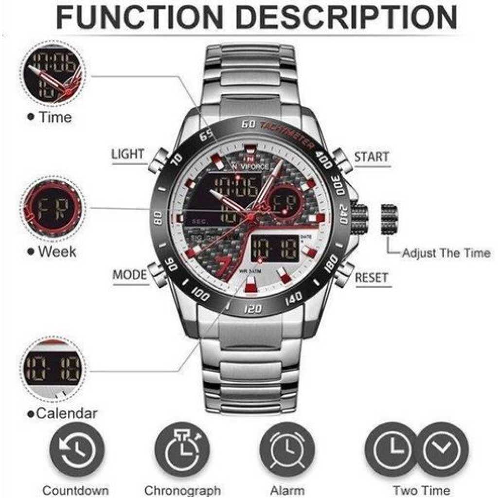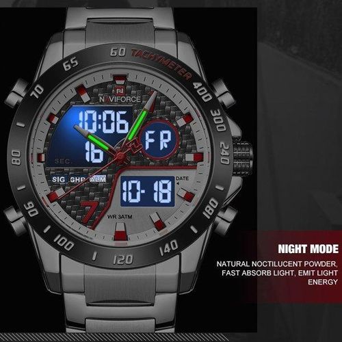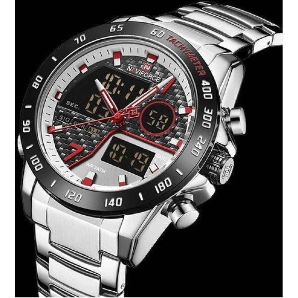 Key Features: Naviforce Stainless steel Dual Classy Watch For Men – Silver Naviforce Silver Dual Display LED light