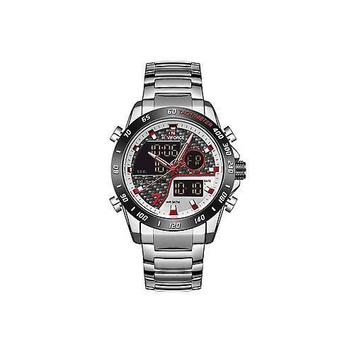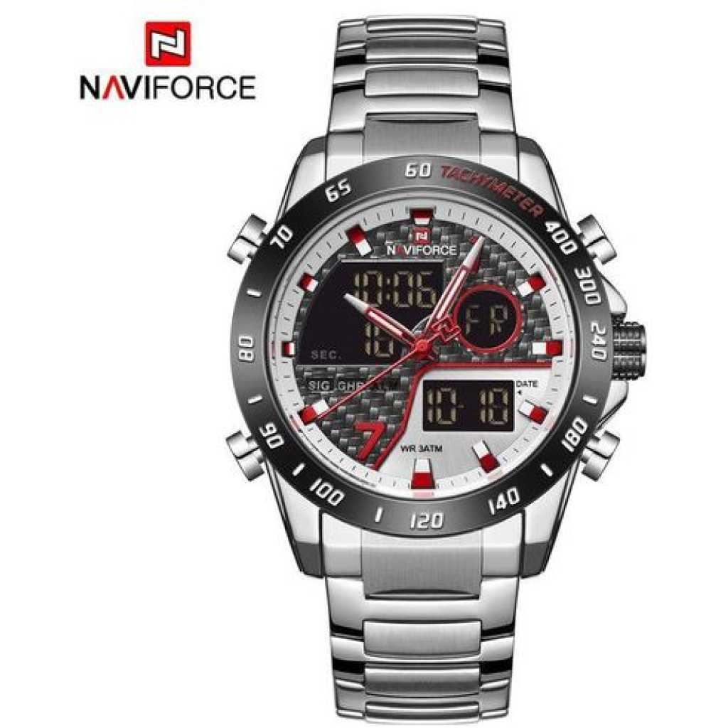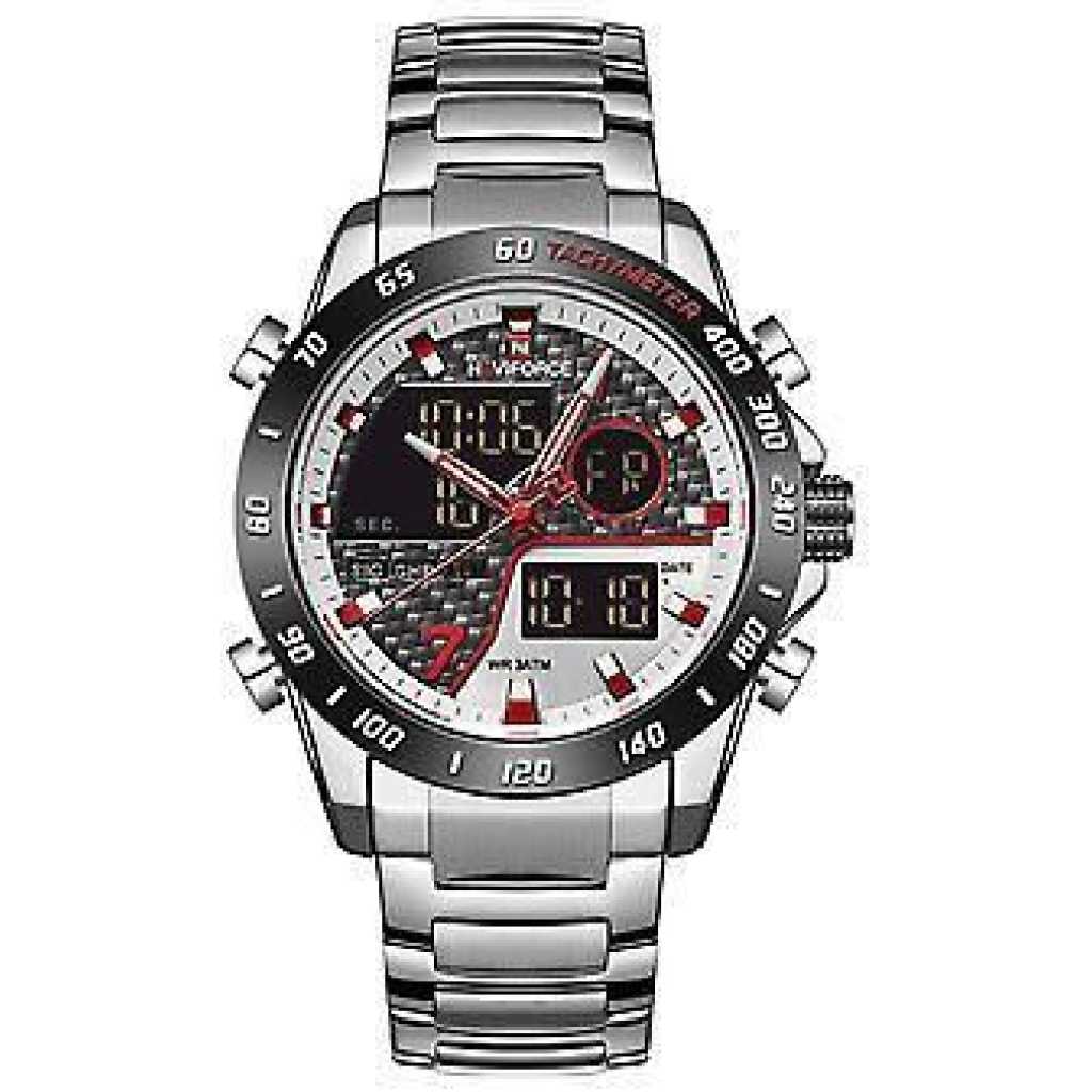 Naviforce Waterproof Stainless steel Dual Display Men’s Watch – Silver It’s a Naviforce stainless steel dual Display Waterproof LED display men’s Office and Casual Designer Watch silver Key Features: Naviforce Waterproof Stainless steel Dual Display Men’s Watch – Silver Naviforce Stainless steel Water resistant Dual Display