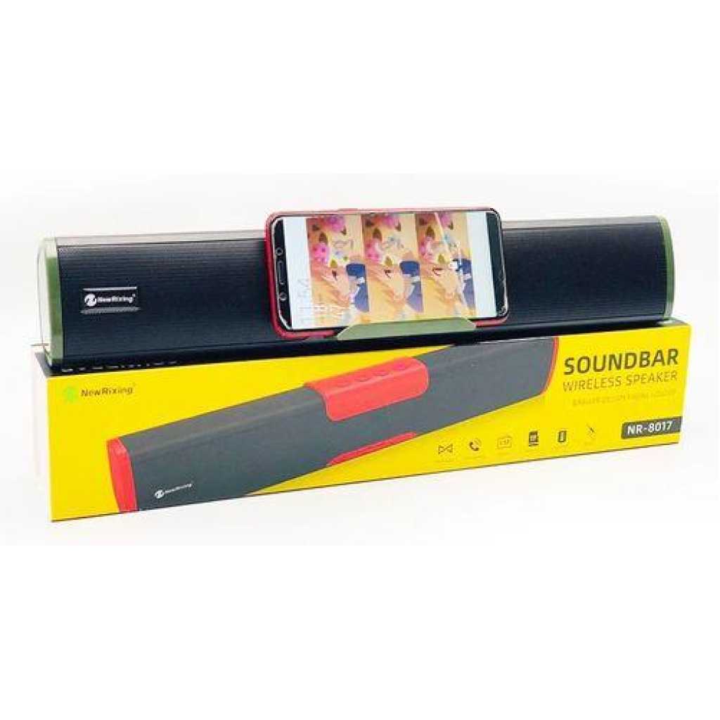 Key Features: New Rixing Bluetooth 5.0 TWS Soundbar X-Bass Speaker It is a TWS-True Wireless Stereo speaker Supports Wireless technology enabled devices such as mobile phones, laptop, desktop, tablets etc. Transmission Distance 10m Is IPX4 waterproof, but cannot throw it in water Supports FM Radio TF Card Line in 3.5MM AUX and USB disk