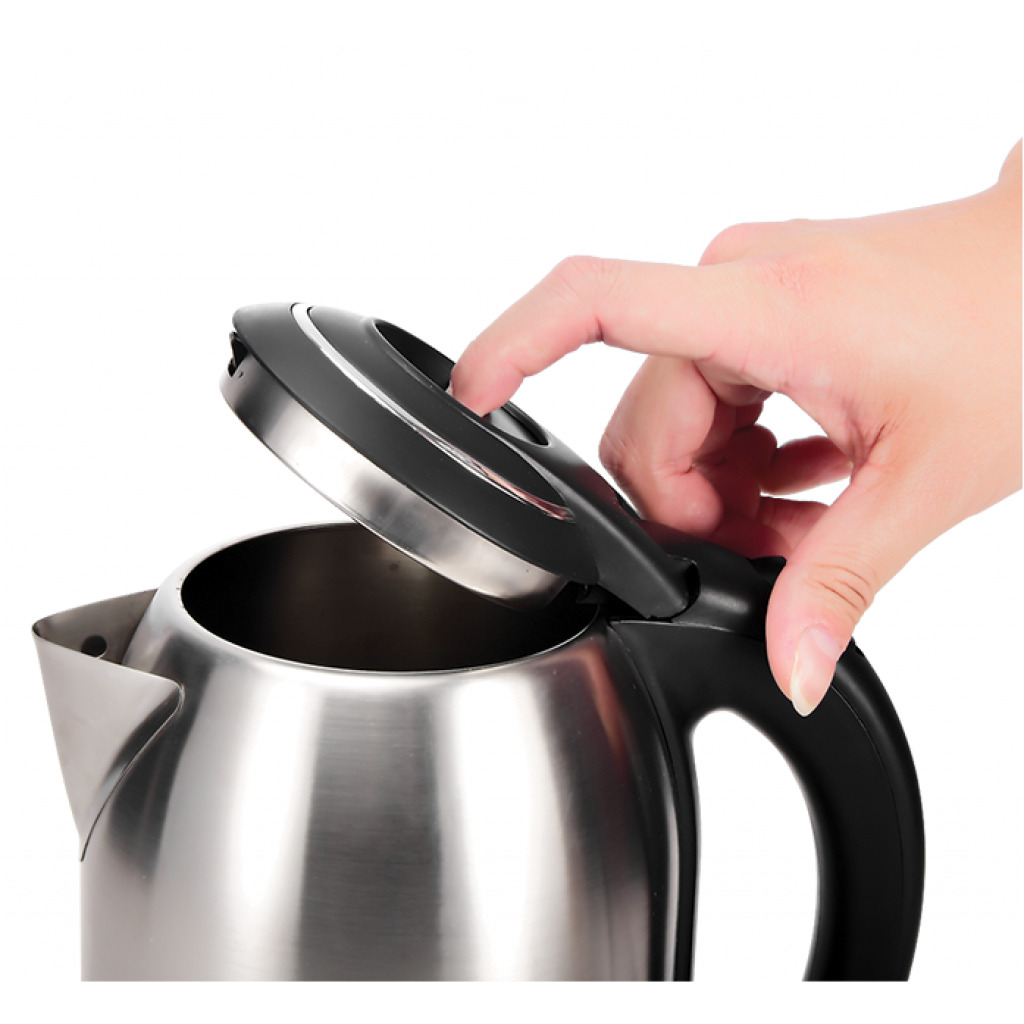 Key Features: High quality stainless steel body • 360° Cordless jug-kettle • Waterless safety system • Automatically turns off when water boils • Elegant modern design • Indicator light • Automatic one button starter, easy operation • Power : 2200W