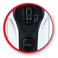 Five-Speed Mix ingredients for a variety of recipes from slowly stirring in chunky ingredients, like nuts or chocolate chips, at speed one to whipping egg whites or heavy cream at speed five. 5 Speeds: Combine ingredients at speed one for slowly stirring in chunky ingredients, speed four for mashing potatoes, speed seven for beating egg whites and whipping meringue. Soft Start™ Feature brings the beaters up to the selected speed gradually to help prevent ingredients from splattering. Lock the cord into either the left or right side of the mixer so you can approach ingredients from any angle. The round cord is easy to wipe clean. Soft Grip Handle provides comfort while mixing. Easily and quickly remove any accessory from the hand mixer with the single-handed press of a button.