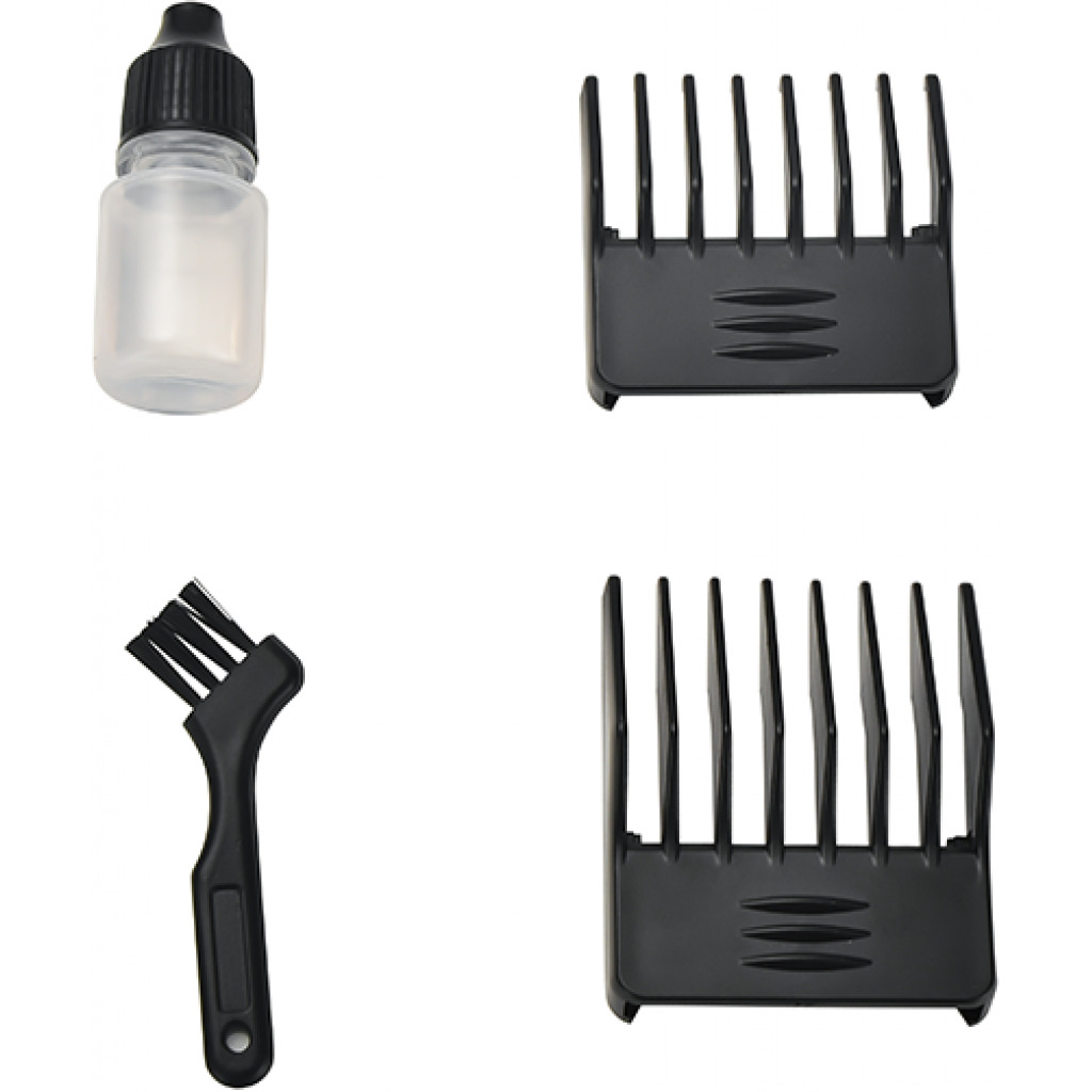Key Features: • 8 Hours charge for 45 min cordless use • Silver PD alloy motor of high rotational sheed • 2 Adjustable comb • Oiler • Cleaning brush