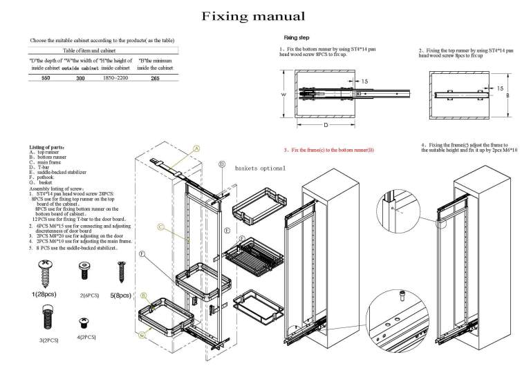 Newmatic 30cm Tall Pull Out Pantry BK7330, 6 Levels, Stainless Steel & Tempered Glass. Don’t have space for a walk-in pantry? Compromise nothing with the BK7330 Tall Pull-Out Pantry. Constructed of durable chrome steel, this kitchen cabinet accessory has six shelves to maximize your kitchen storage space and gives a clear overview of all your groceries. Optimize your kitchen with Newmatic kitchen hardware today. This product is designed to be installed in a kitchen cabinet. Pair with other Newmatic kitchen appliances and hardware for the perfect kitchen system. Product Specification Materials Stainless Steel & Tempered Glass Primary Color Finish Levels 6 Dimensions W25 x D50 x 175 – 195 cm Suggested Cabinet Dimensions W30cm x D60cm x H185-220cm