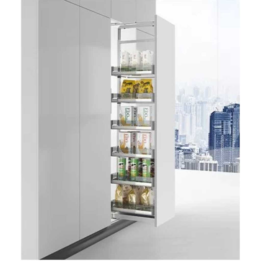 Key Features: Newmatic 30cm Tall Pull Out Pantry BK7330, 6 Levels, Stainless Steel & Tempered Glass. Don’t have space for a walk-in pantry? Compromise nothing with the BK7330 Tall Pull-Out Pantry. Constructed of durable chrome steel, this kitchen cabinet accessory has six shelves to maximize your kitchen storage space and gives a clear overview of all your groceries. Optimize your kitchen with Newmatic kitchen hardware today. This product is designed to be installed in a kitchen cabinet. Pair with other Newmatic kitchen appliances and hardware for the perfect kitchen system.