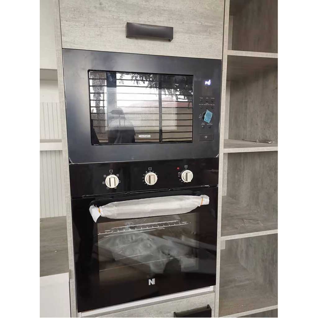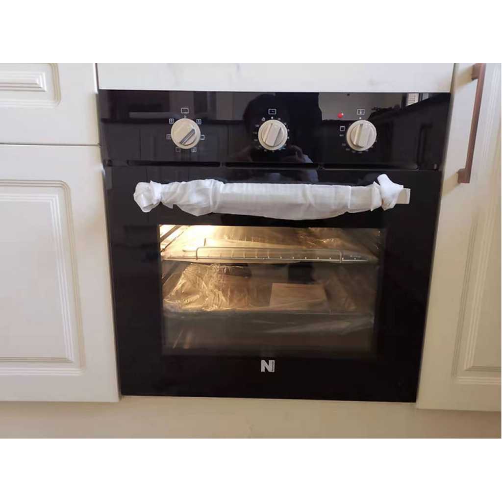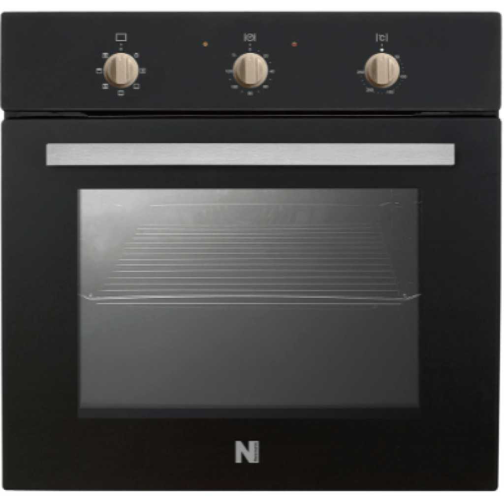 Key Features: Newmatic 65L Built-in Electric Oven FM673, 7 Cooking Functions, 2800W, Mechanical Timer, Oven Fan – Black. Energy Class A 65L Built-in Multifunction oven 7 Cooking Functions Cooling fan Total Power: 2800W Zinc alloy knobs and spacer AC220V/50Hz Generous 65L capacity Stainless steel cavity Simple three-knob control panel w/ mechanical timer Tangential ventilation Triple-layer cool door that opens at any angle Complimentary enamel tray and grill rack