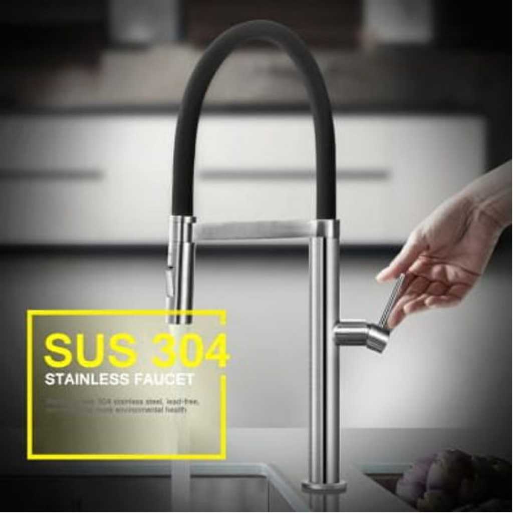 Searching for a modern-looking tap? Then the Newmatic T09M Kitchen Flexi Mixer Tap may intrigue you with its unique shape and many functions. Features: Control water flow and temperature with/ a single dial Flexible spout makes quick work of washing up Jet or spray water stream available In-built aerator lowers water usage by 30% and reduces splashing Ultra-durable ceramic cartridge built to last Product Specification Type Flexi Mixer Tap Material 304 Stainless Steel