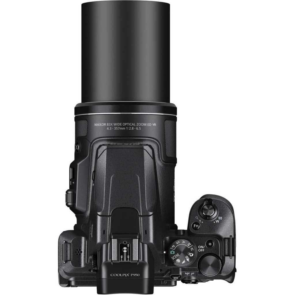 Reach so much farther with the powerful 83x optical zoom of the COOLPIX P950—from 24mm wide-angle landscape and interior shots, to impressive 2, 000mm super-telephoto stills and 4K UHD videos of distant wildlife, aircraft and more. With Dual Detect Optical VR image stabilization and enhanced lens characteristics found in Nikon’s heralded optics, far off subjects are captured with sharpness, clarity and superior image quality. Compose your incredible shots through the super high resolution electronic viewfinder or from creative angles on the large, flip-out vari-angle display, then transfer them seamlessly to your smart device for easy sharing with your friends and followers.