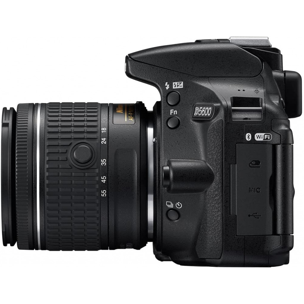 Key Features: Nikon D5600 Digital SLR Camera & 18-55mm VR DX AF-P Lens – Black Sensor: APS-C CMOS Sensor with 24.2 MP (high resolution for large prints and image cropping) ISO: 100-25600 sensitivity range (critical for obtaining grain-free pictures, especially in low light) Image Processor: Expeed 4 with 39 autofocus points (important for speed and accuracy of autofocus and burst photography) Video Resolution: Full HD video with fully manual control and selectable frame rates (great for precision and high-quality video work) Connectivity: WiFi, NFC and Bluetooth built-in (useful for remotely controlling your camera and transferring pictures wirelessly as you shoot) Lens Mount: Nikon F mount