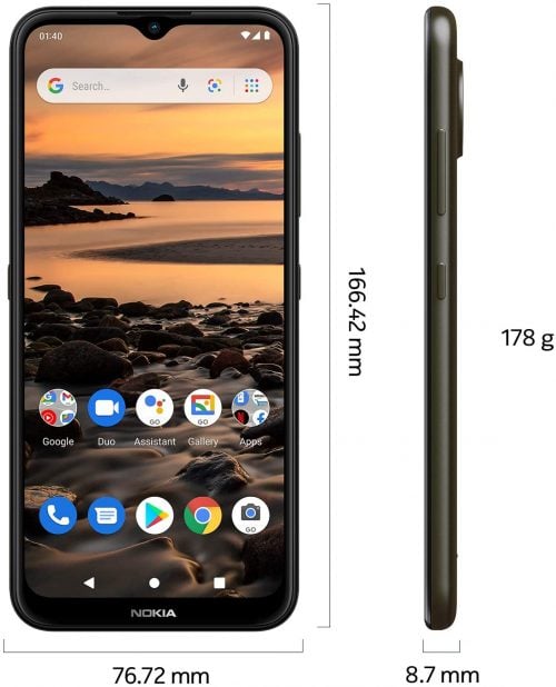 Nokia 1.4 smartphone was launched on 3rd February 2021. The phone comes with a 6.52-inch touchscreen display with a resolution of 720×1600 pixels and an aspect ratio of 20:9.Nokia 1.4 comes with 2GB of RAM. The Nokia 1.4 runs Android 10 (Go edition) and is powered by a 4000mAh non-removable battery. As far as the cameras are concerned, the Nokia 1.4 on the rear packs an 8-megapixel primary camera, and a 2-megapixel camera. The rear camera setup has autofocus. It sports a 5-megapixel camera on the front for selfies. Nokia 1.4 is based on Android 10 (Go edition) and packs 32GB of inbuilt storage that can be expanded via microSD card (up to 128GB). The Nokia 1.4 is a dual-SIM (GSM and GSM) smartphone that accepts Nano-SIM and Nano-SIM cards. The Nokia 1.4 measures 166.42 x 76.72 x 0.00mm (height x width x thickness) and weighs 178.00 grams. It was launched in Charcoal, Dusk, and Fjord colours. Connectivity options on the Nokia 1.4 include Wi-Fi 802.11 b/g/n, GPS, Bluetooth v4.20, Micro-USB, FM radio, 3G, and 4G (with support for Band 40 used by some LTE networks in India). Sensors on the phone include accelerometer, proximity sensor, and fingerprint sensor.