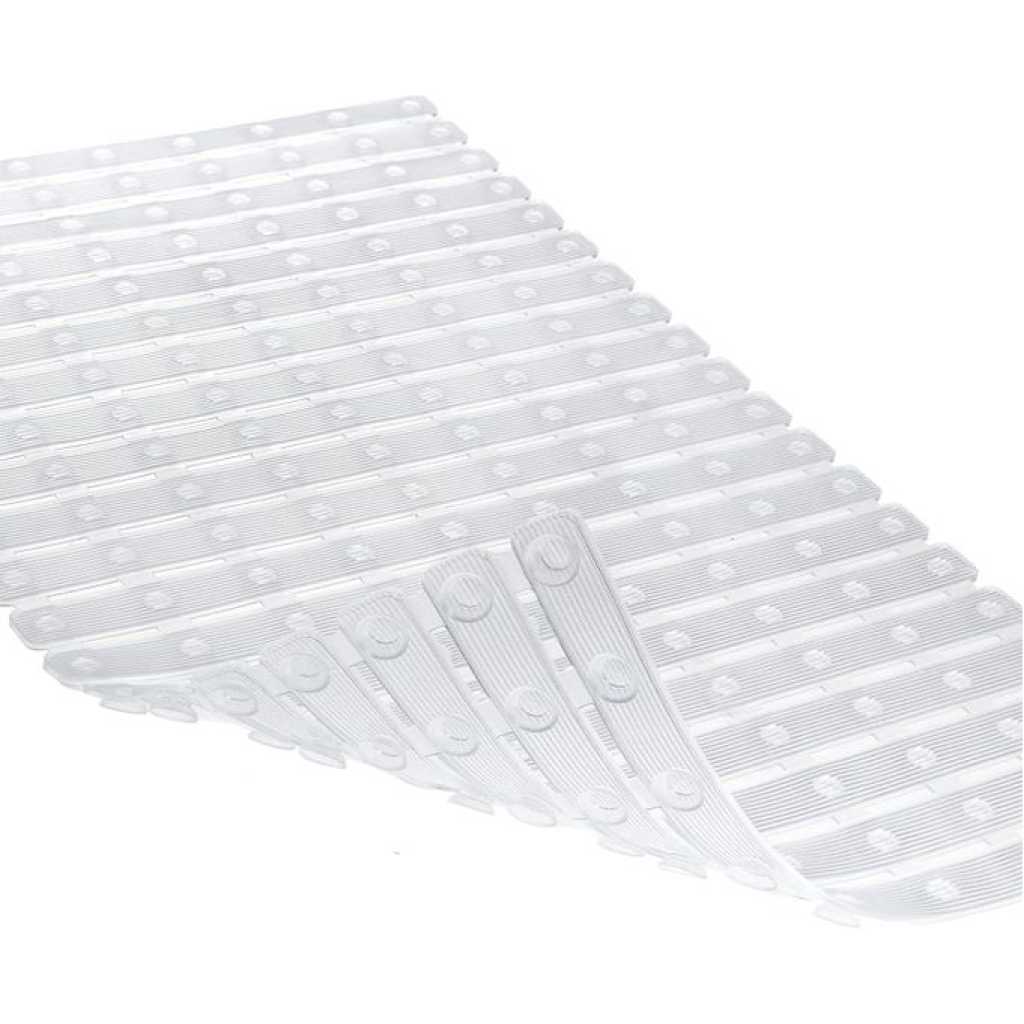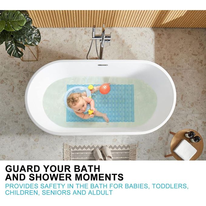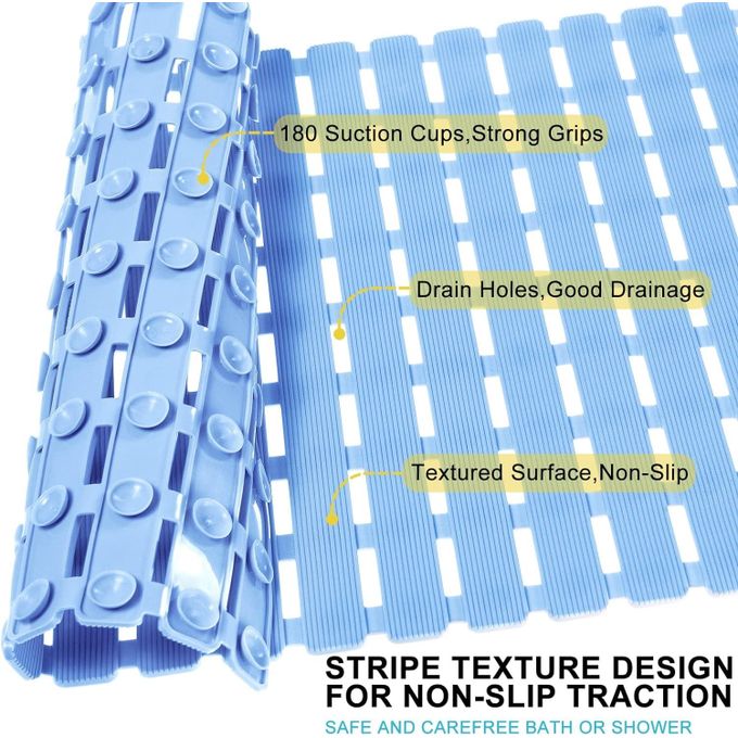 Key Features: Non Slip Floor Bath Mat Bathtub Shower Mat, Machine Washable Bathtub Mat with Suction Cups and Drain Holes, Soft Bathroom Accessories, 27.5×15.7 Inch- Multicolor SUPER NON-SLIP: 180 large suction cups have strong grip and effectively keep the bathroom mat on the bathtub or shower floor. The striped textured surface design also has good non-skid performance. QUICK DRAIN: The slotted design of the large rectangular drainage holes and the striped textured surface allow water and suds to drain quickly instead of collecting around the foot, keeping the shower mat clean. SAFE AND DURABLE: Made of premium PVC material, whether it is used in the bath tub or shower, enjoy a comfortable, soft-on-feet experience. Especially to protect the safe bathing of babies, children, toddlers and the elderly. MACHINE WASHABLE: The bath mat is easy to clean, just machine wash and air dry, you can hang the bathmat on the side of the bathtub or on the bathroom doorknob to air dry the mat easily. VERSATILE: This bath mat is 27.5 X 15.7 inches in size, providing excellent coverage, and can be DIY spliced by cutting according to the size of your bathtub or shower floor. Add a practical touch to your bathroom accessories with this stylish and elegant bathtub mat — great for homes, dorms, hotel or gyms! CAUTION: Clean and wet the surface before use. Place the non-slip mat in place, press down to make the suction cup grasp the surface and hold it, and ensure that the mat is firmly in place. The bathtub mat can only be attached to a clean and smooth surface.