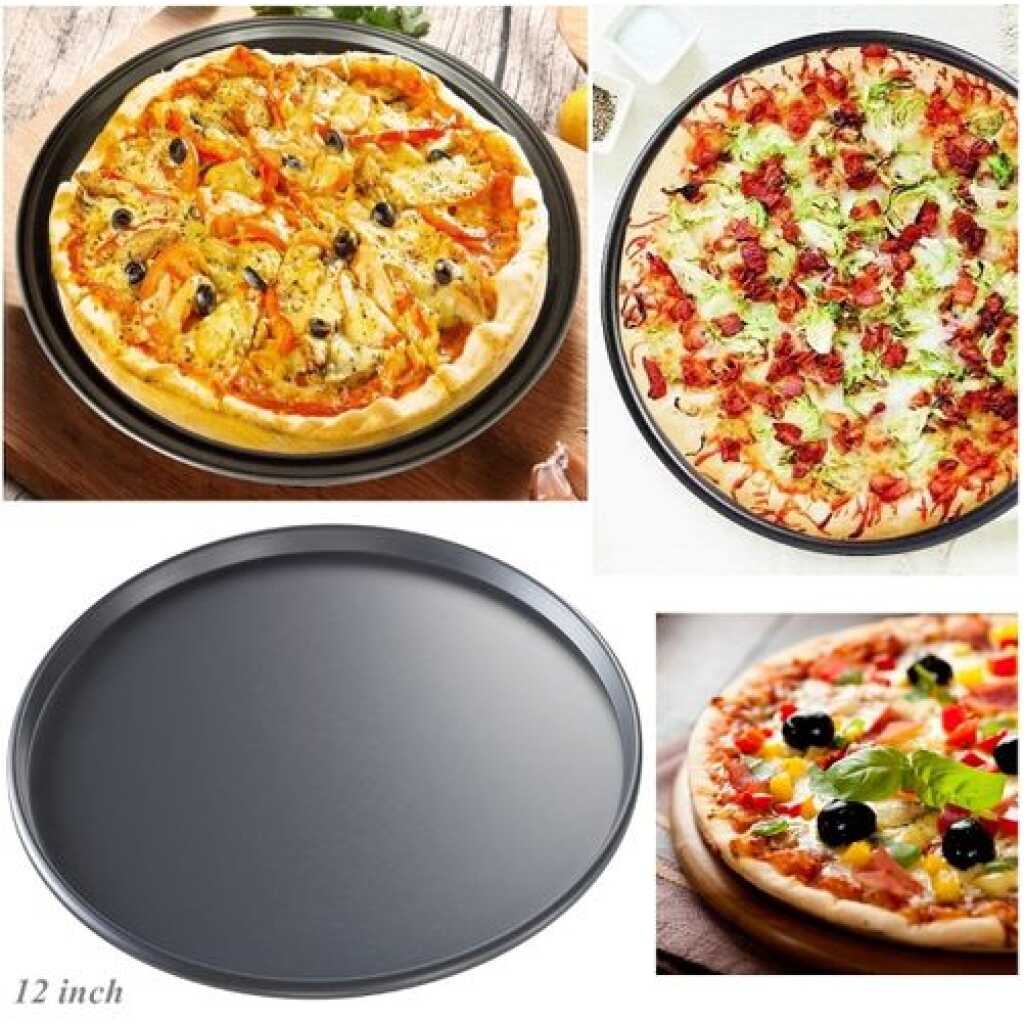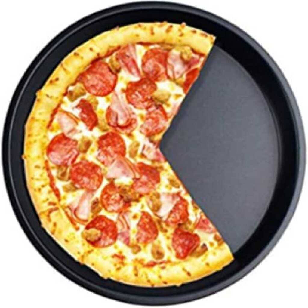 Key Features: Non-Stick Pizza Steel Baking Round Oven Tray Pan, 30cm. The big, round pan is suitable for deep-dish pan pizza. Non-stick surface. Works on an induction hob. Heavy thicker aluminum plating. Food-grade Teflon. long x 9″ wide x 2″ deep, mold dish with high-quality frame. Makes a difference in gas mark oven.