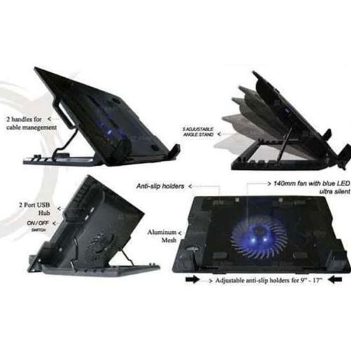 Laptop Cooling Pad with Stand, cooler pad or chill mat is an accessory for laptops that helps reduce their operating temperature, which is normally used when the laptop is unable to sufficiently cool itself. Laptop coolers are intended to protect both the laptop from overheating and the user from suffering heat related discomfort. A cooling pad move air to direct heat away from the laptop quickly. Don’t use Laptop directly on bed, it is dangerous for Laptop. Don’t use Laptop on your Lap directly, it is dangerous for you. (Laptop in images is not included. it’s for demonstration) Ergo Stand can be used as a notebook stand and/or cooling pad. The adjustable anti-skid holders are compatible for 9″~17″ laptops. The 140mm silent fan and full range mesh surface with aerodynamic designed intake provide silent and efficient cooling. Ergo Stand is the perfect multifunction product that gives your laptop the total cooling solution. Order this Item today and have it delivered to your doorstep.