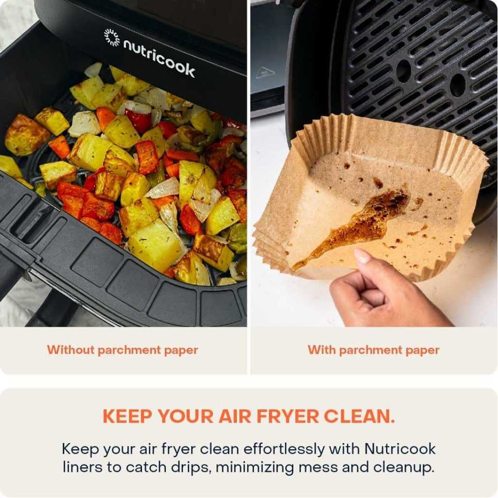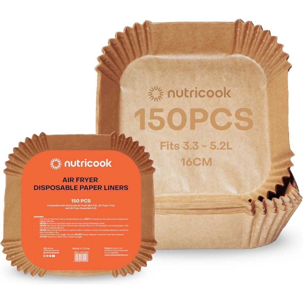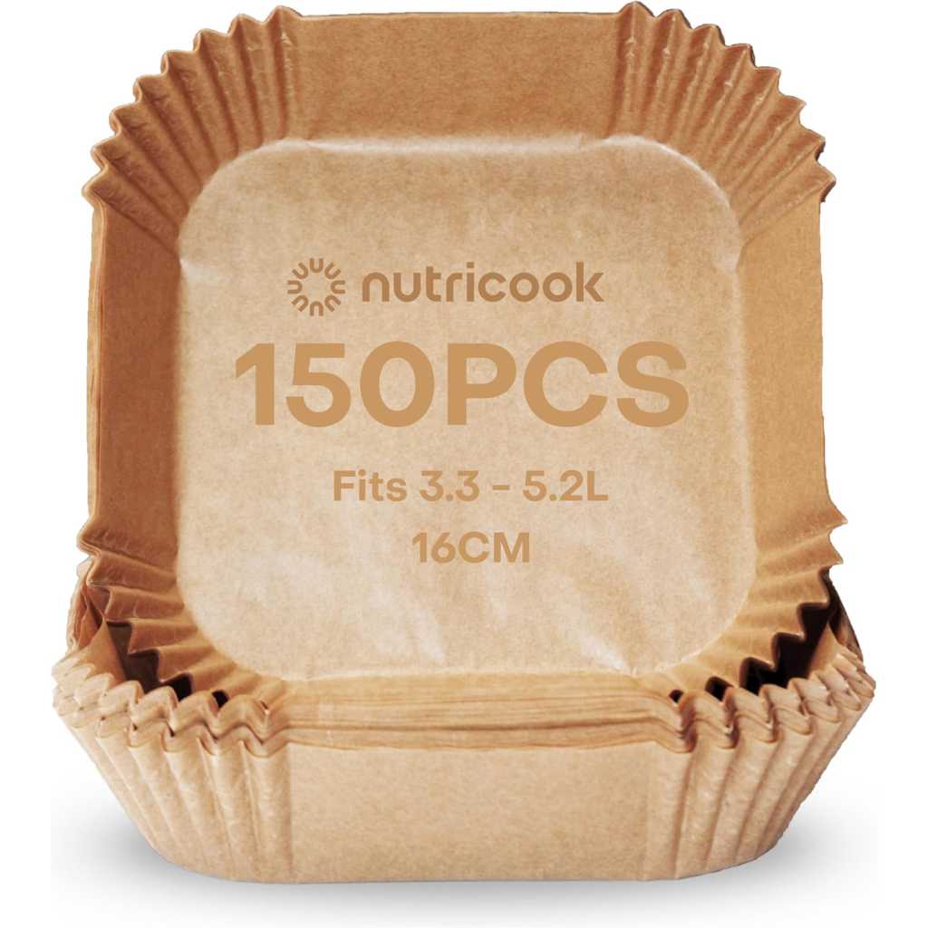 Nutricook 150 Pieces Disposable Air Fryer Liner, Water/oil proof for Baking, Roasting, and Air Frying Fits any brand from 3.3L to 5.2L Air fryers,16cm Square, NC-AFL100